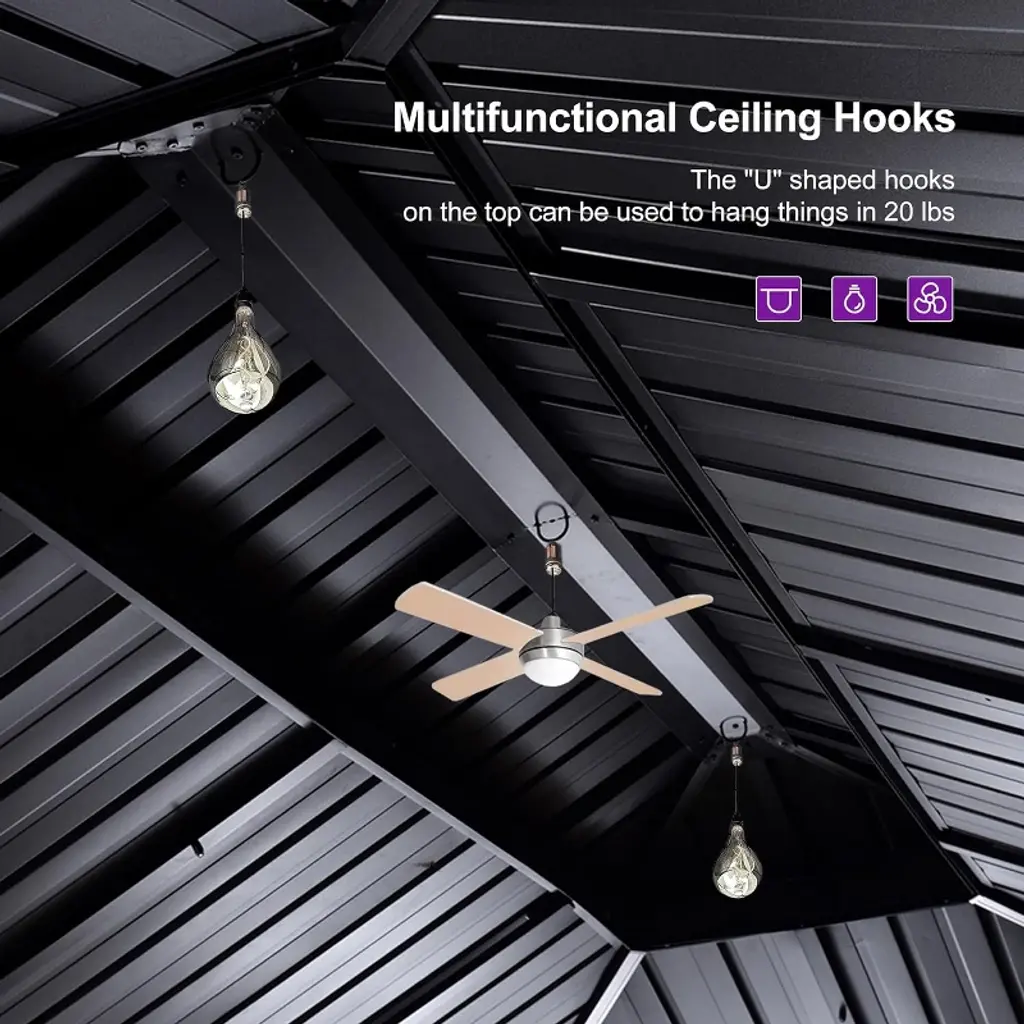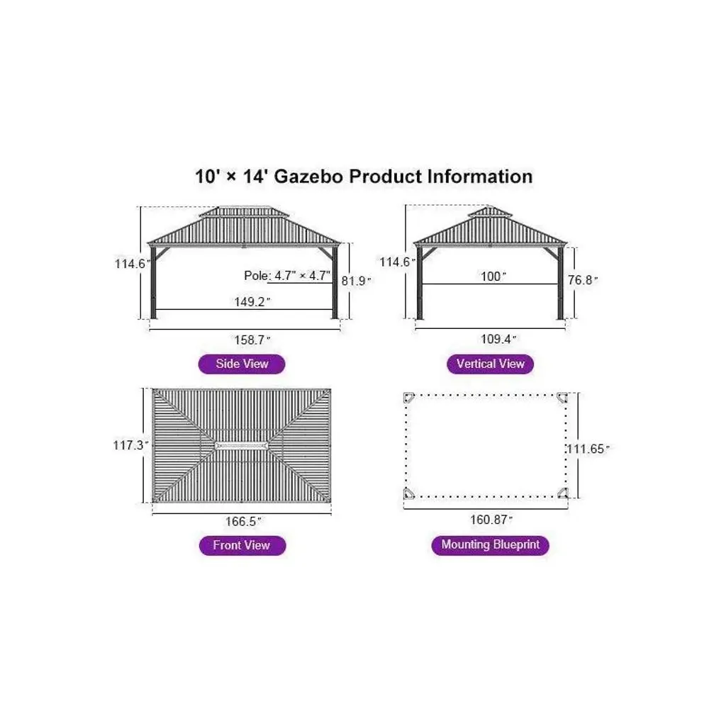 PURPLE LEAF Outdoor Hardtop Gazebo is the perfect addition to your backyard decor, which offers a large shade and gives effective large protection against sun's rays and harsh heat.It becomes the favored place to relax, dine, and enjoy conversations. Place on your patio for yard of enjoyment now!