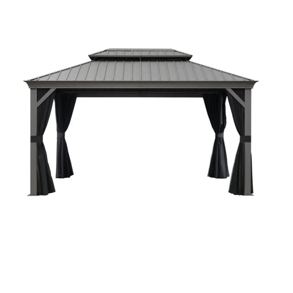 Purple Leaf 10' X 14' Outdoor Hardtop Gazebo With Double Roof Metal Gazebo,light Gray
