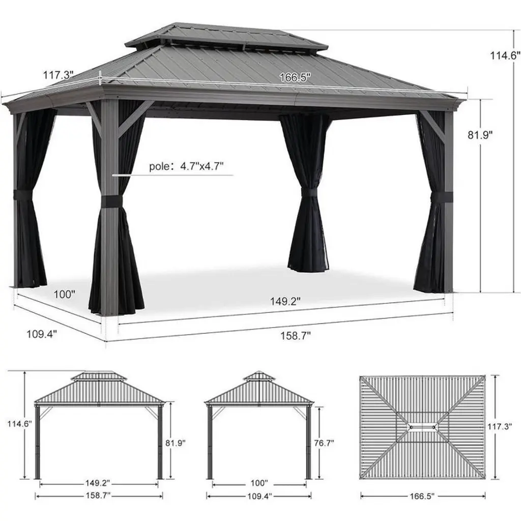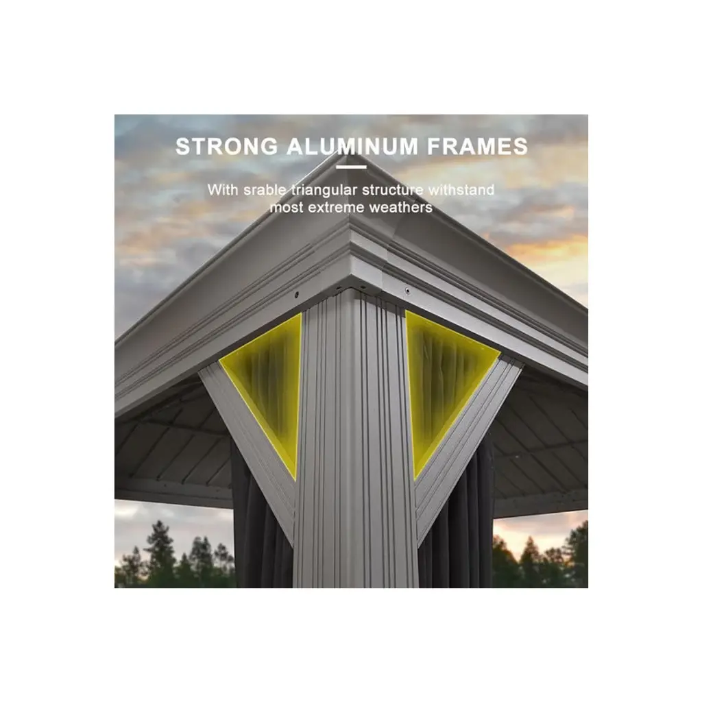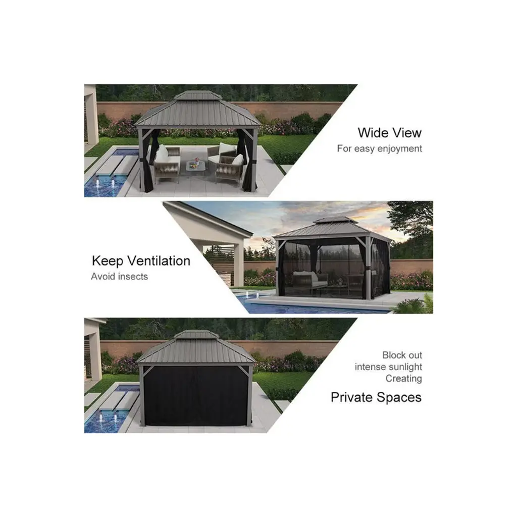PURPLE LEAF gazebo is designed with a high-end and sophisticated color - light grey, which complements most house designs and colors, as well as various types of furniture. The light color tone effectively reflects sunlight and helps better control the internal temperature. This gazebo becomes the favored place to relax, dine, and enjoy conversations. Place on your patio for yard of enjoyment now!