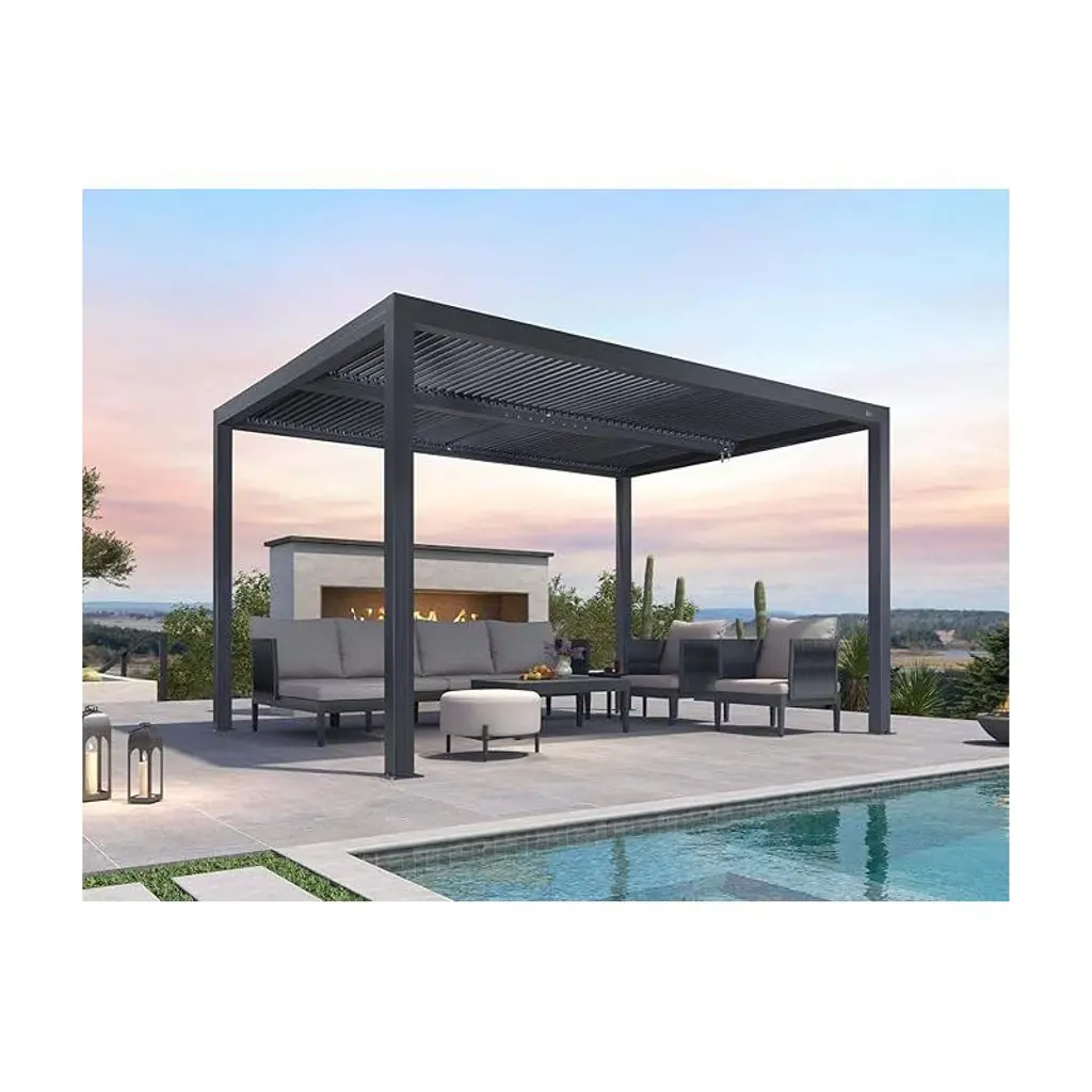 Purple Leaf 11' X 13' Louvered Pergola Outdoor Aluminum Pergola With Adjustable Roof For Deck Backyard Garden Grey Hardtop Gazebo