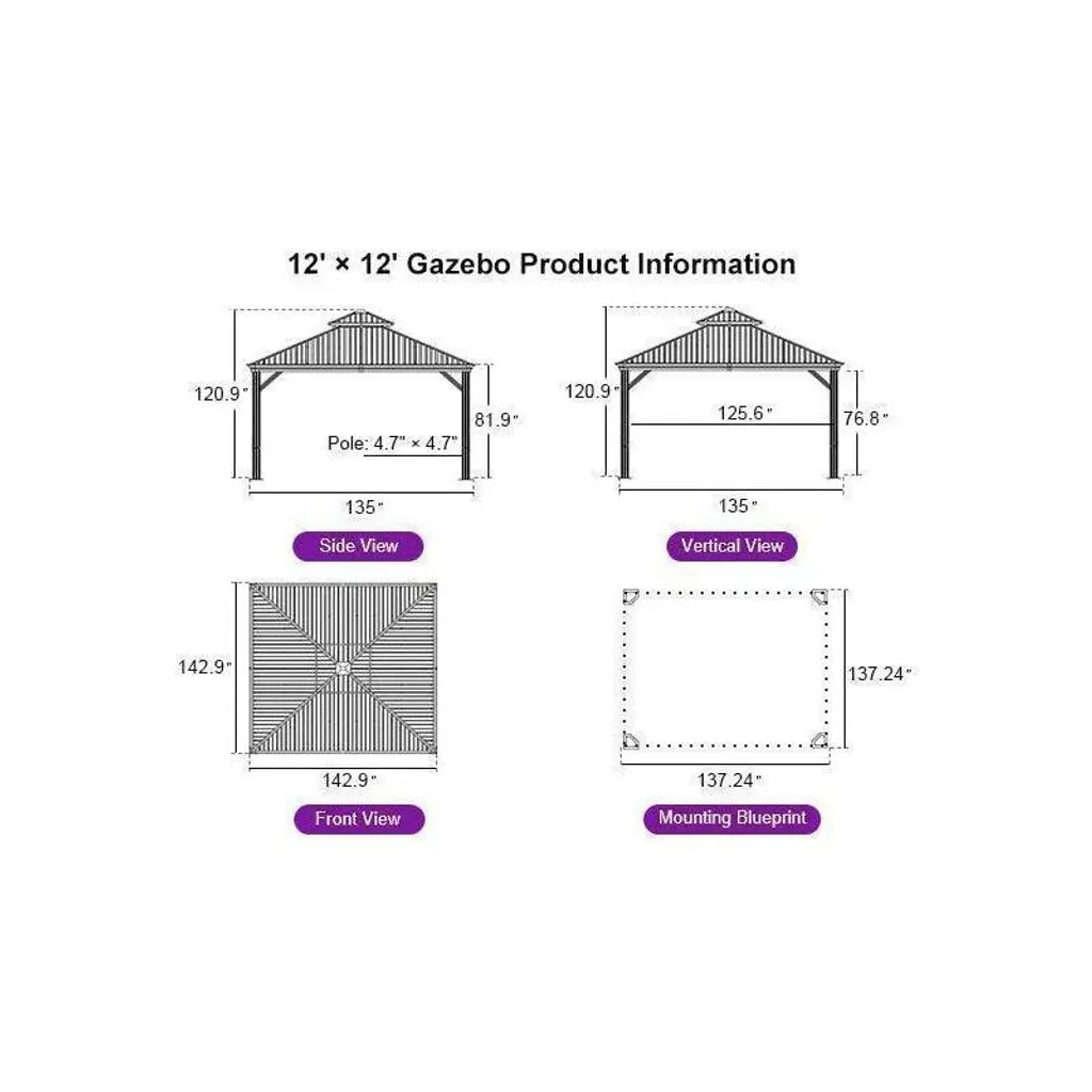 PURPLE LEAF Outdoor Hardtop Gazebo is the perfect addition to your backyard decor, which offers a large shade and gives effective large protection against sun's rays and harsh heat.It becomes the favored place to relax, dine, and enjoy conversations. Place on your patio for yard of enjoyment now!