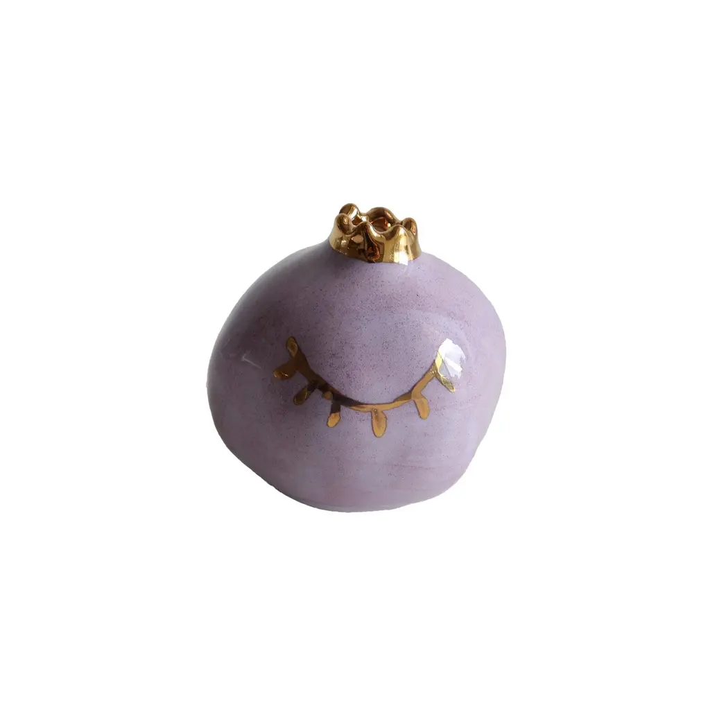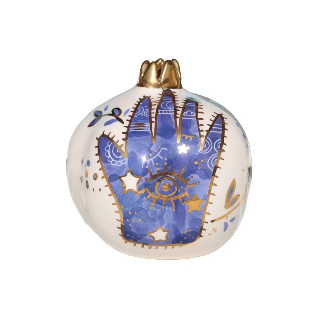 The Purple Pomegranate With Eye is a unique handcrafted ceramic piece, featuring a symbolic eye motif for protection and positive energy. Painted in vibrant purple, it exudes charm and spirituality. Lightweight (80g) and compact, it’s a captivating addition to any décor.