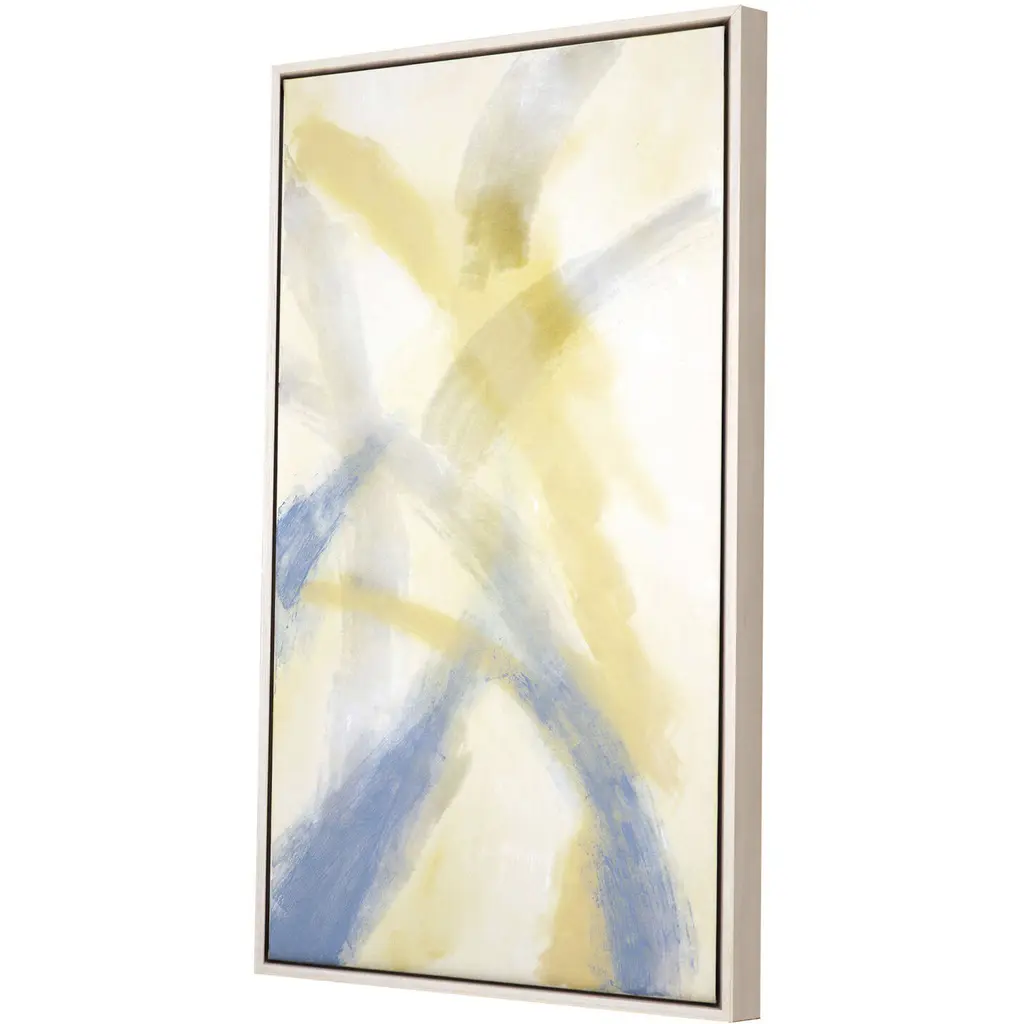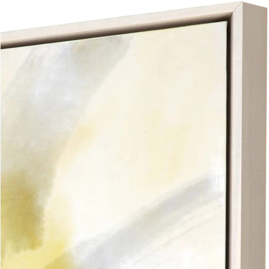 Exclusive hand painted canvas. Canvas is mounted in a whitewash wood floater frame.