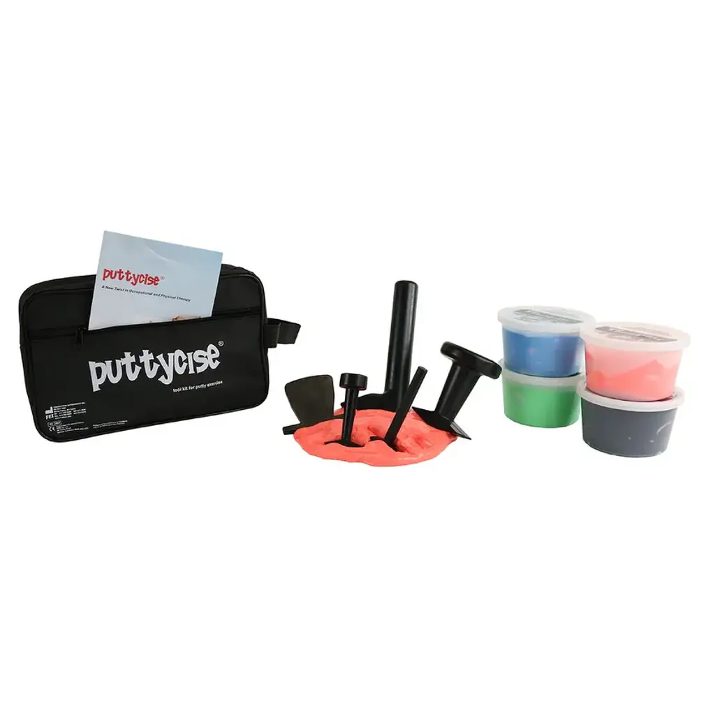 There's a new twist in hand therapy. Puttycise® is great for use with Theraputty® to increase function and versatility. 5 piece tool set includes the cap turn, key turn, knob turn, L-bar, and peg turn. Each tool helps simulate various functions to help with everyday life. Kit includes carry bag and Theraputty® exercise material as specified in product title.While we aim to supply accurate product information, it is sourced by manufacturers, suppliers and marketplace sellers, and has not been provided by Overstock.