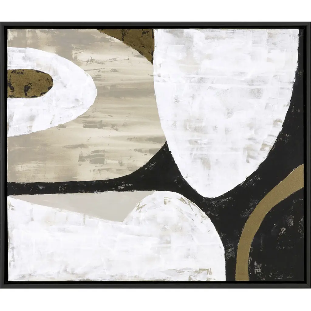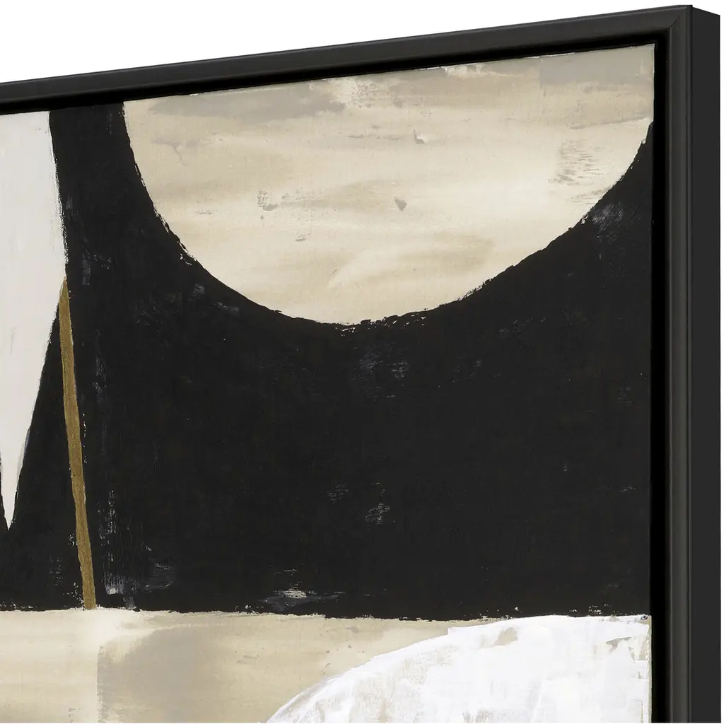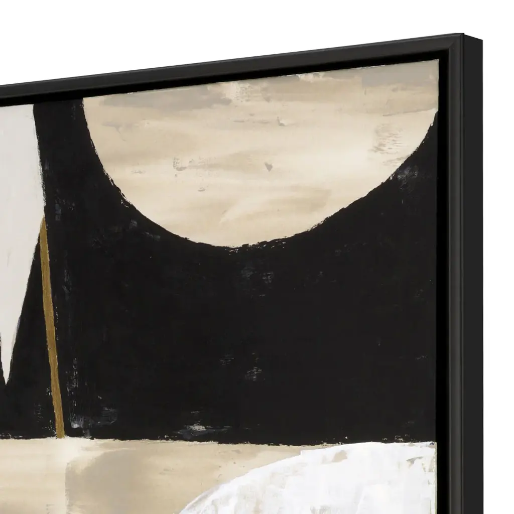 Exclusive hand painted canvas. Hand stretched and mounted in a satin black wood floater frame.