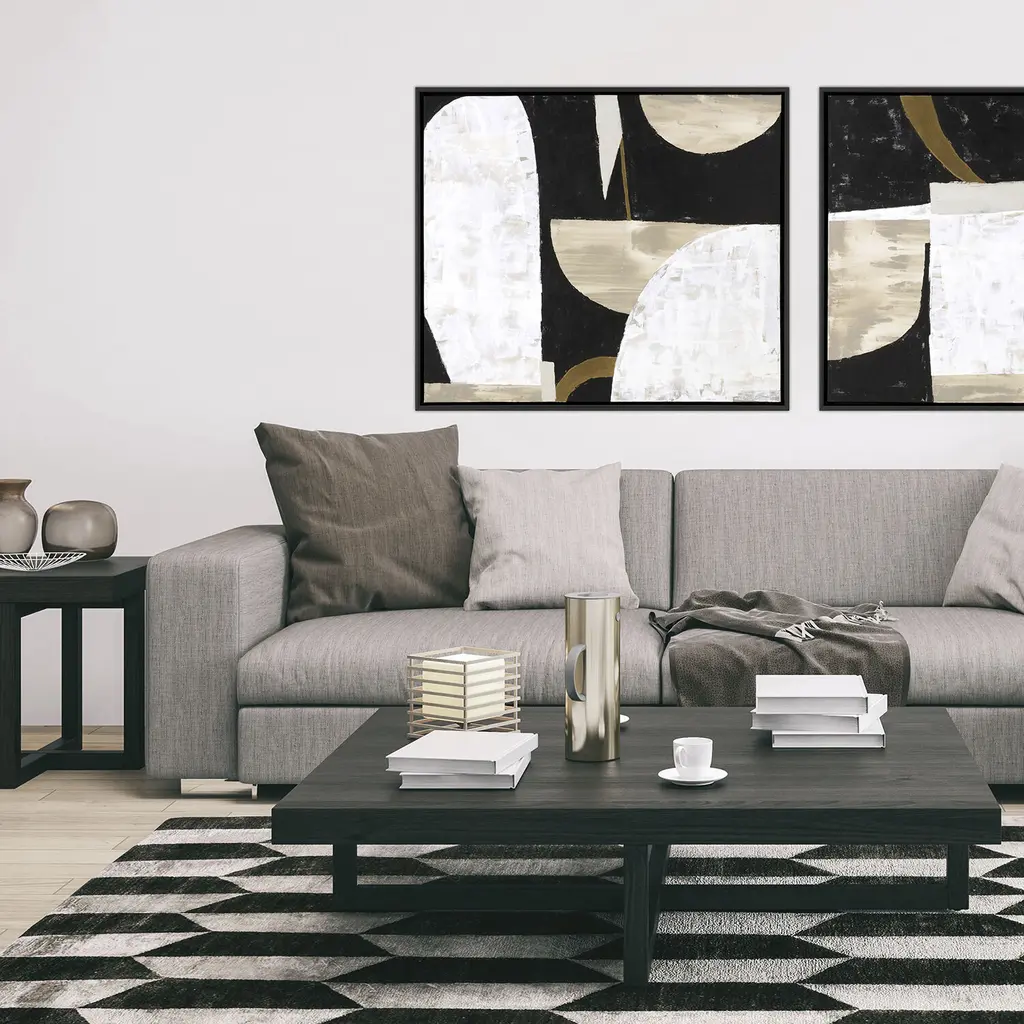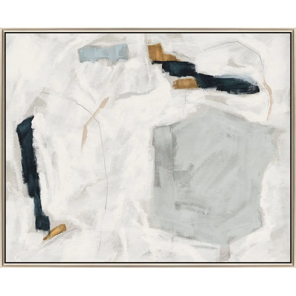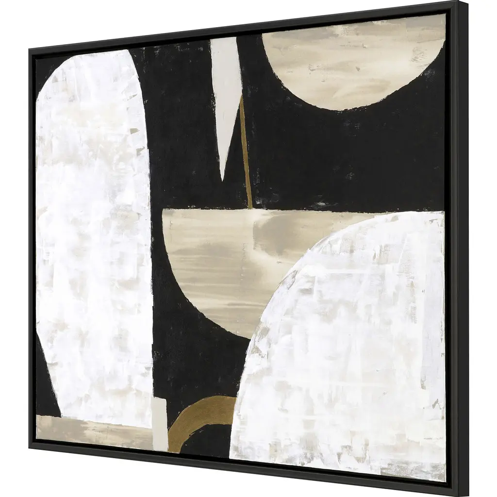 Exclusive hand painted canvas. Hand stretched and mounted in a satin black wood floater frame.
