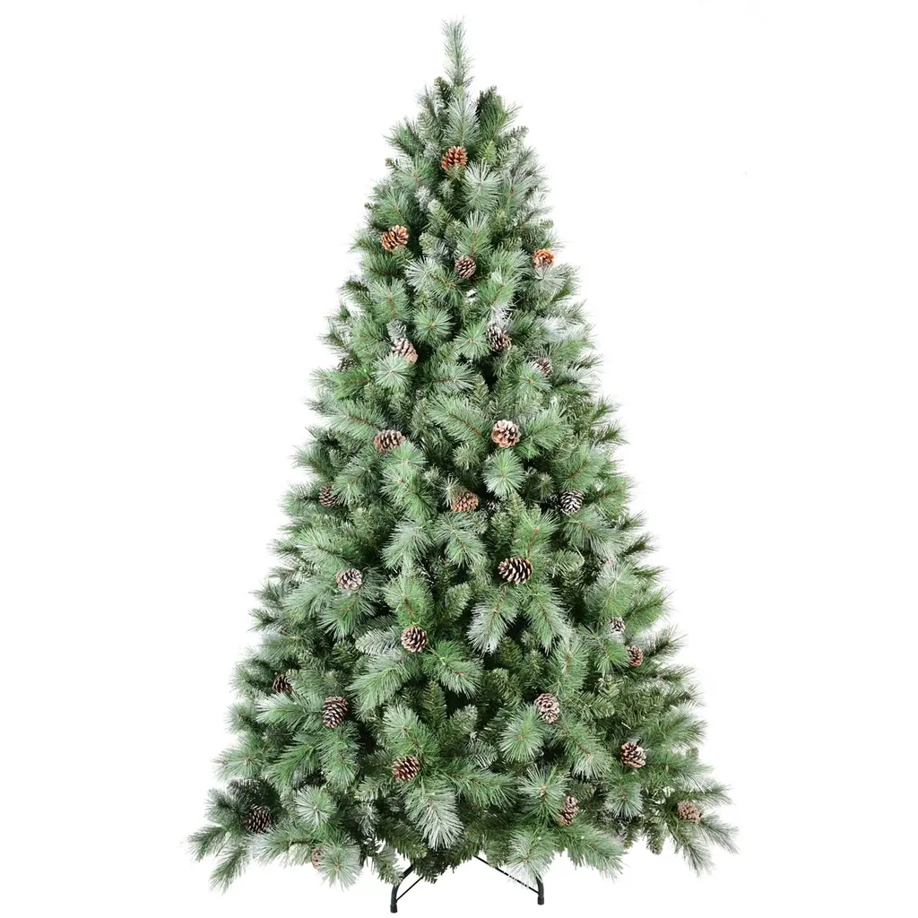 Pvc/ Pine Needle Spray White Decorated Christmas Tree With Pine Cone Decoration - Green-Without Light - 5 Foot