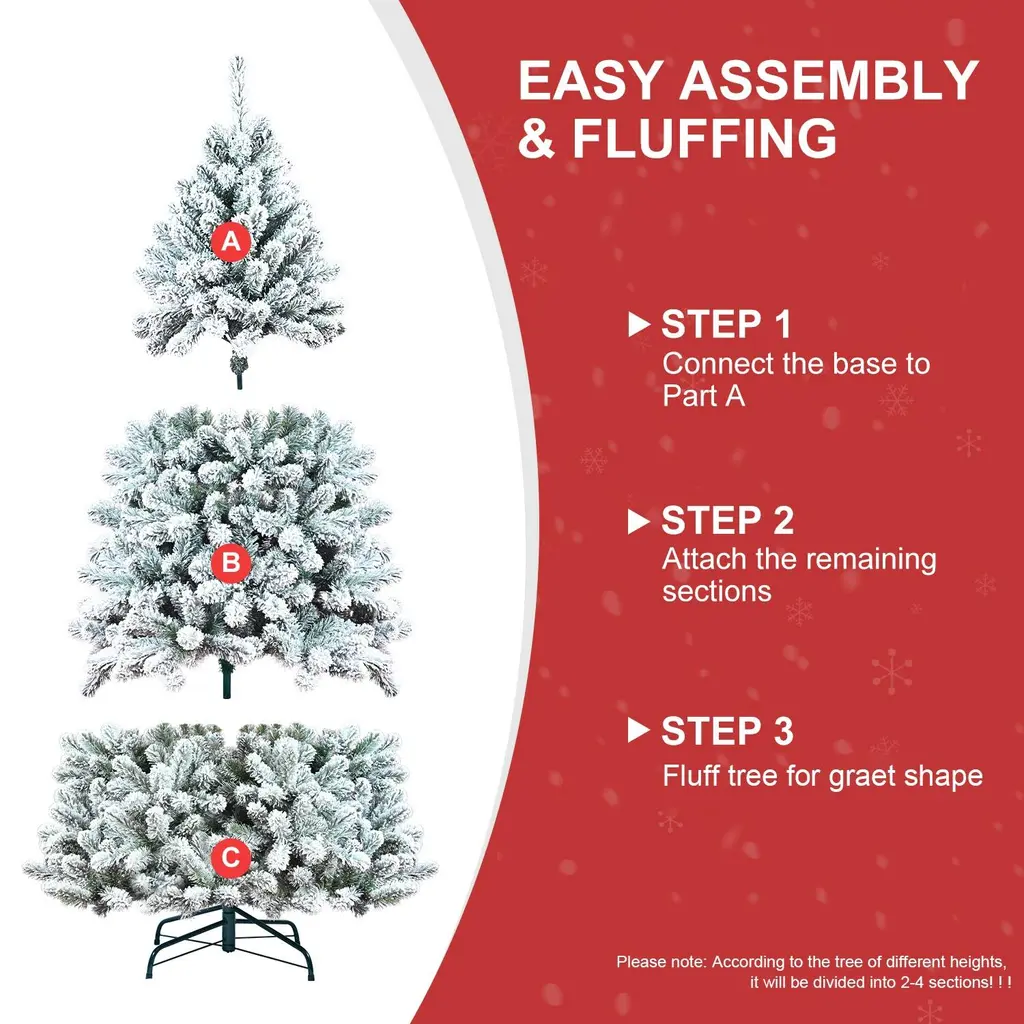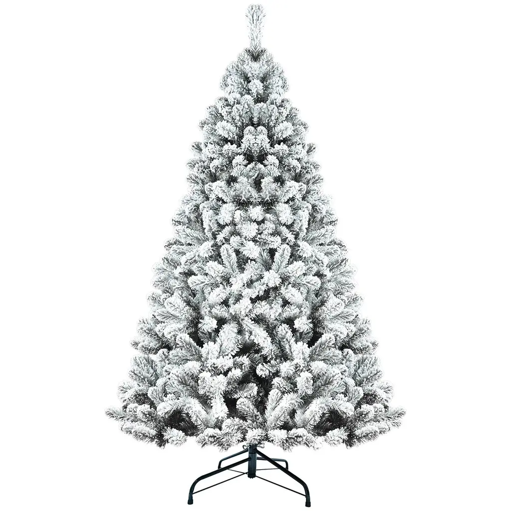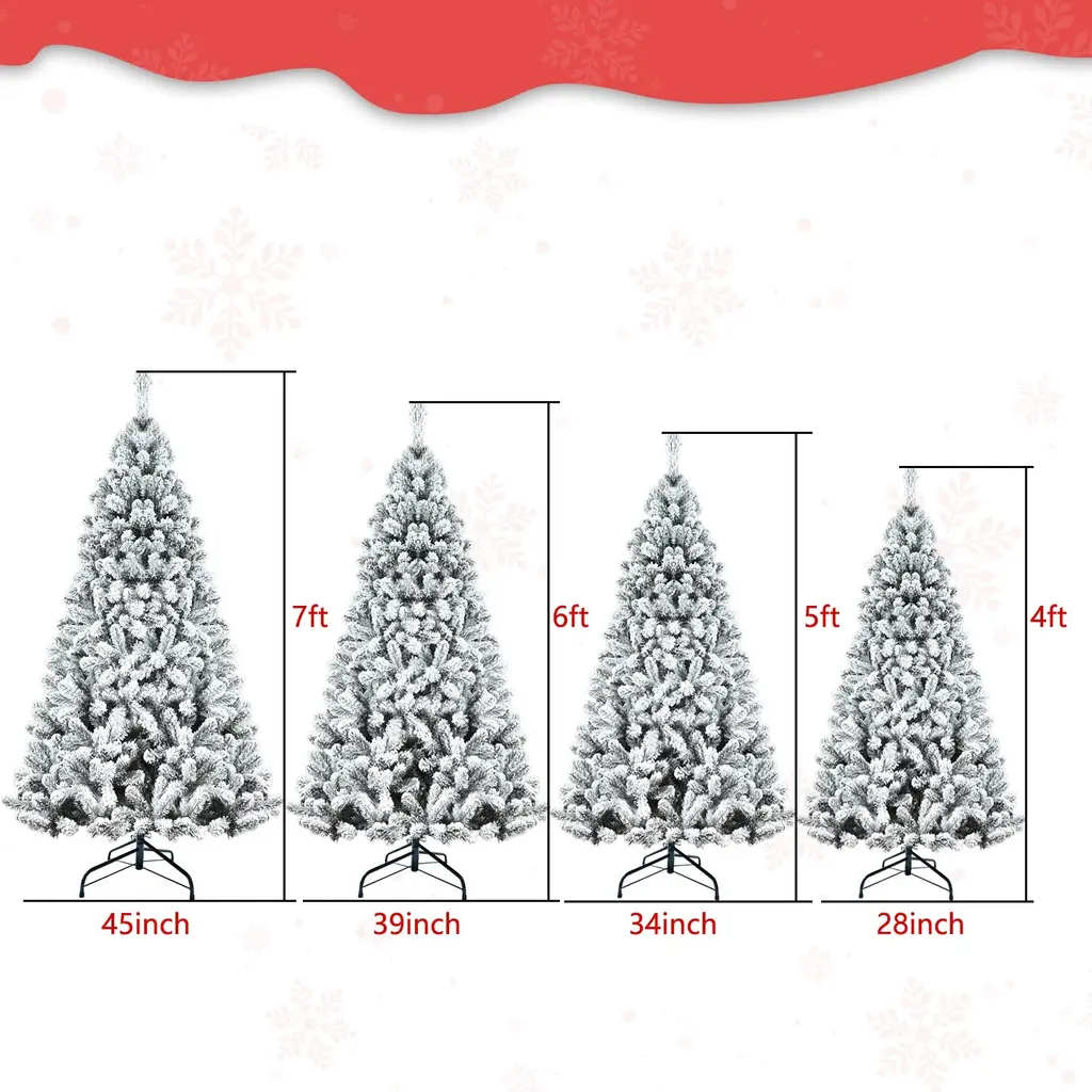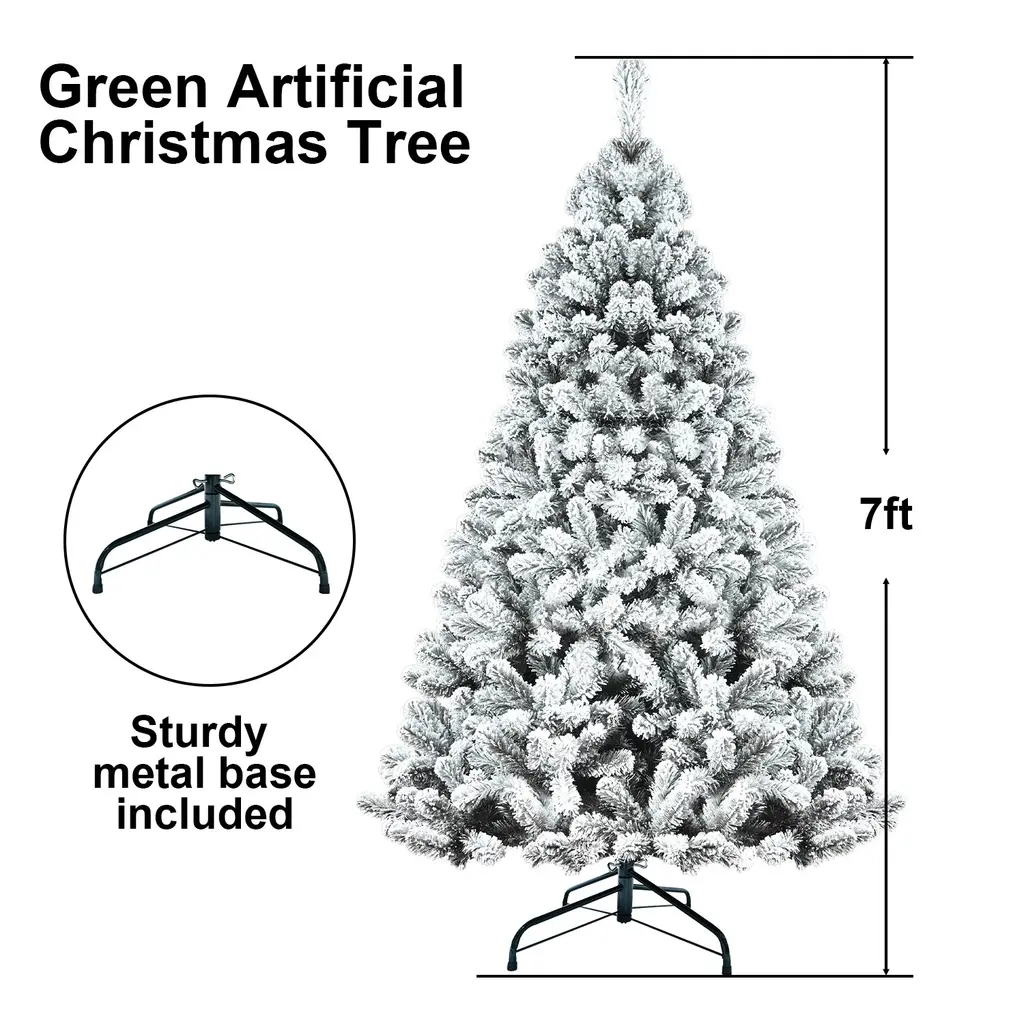 Pvc Round Head Automatic Wire Hinge Flocked Christmas Tree - 7 Foot