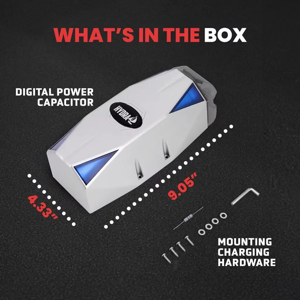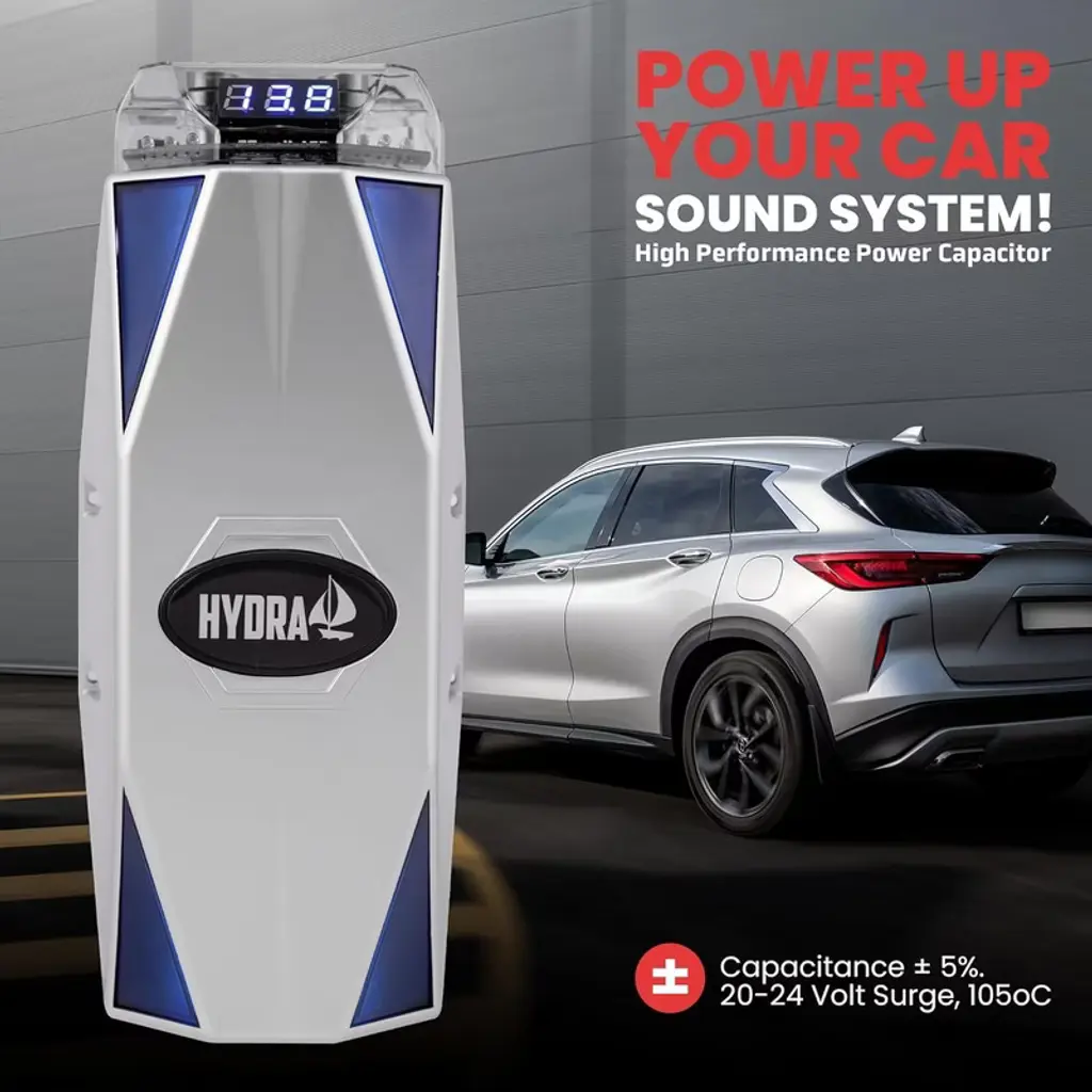 The Pyle 0.3 Farad Digital Power Capacitor (PLMRCAP30) is designed to stabilize the power supply in your car audio system, ensuring consistent performance and improved sound quality. With a capacitance of 0.3 Farads and a tolerance of ±5%, this power capacitor features a striking blue digital display and blue LED flash, adding a modern touch to your setup.