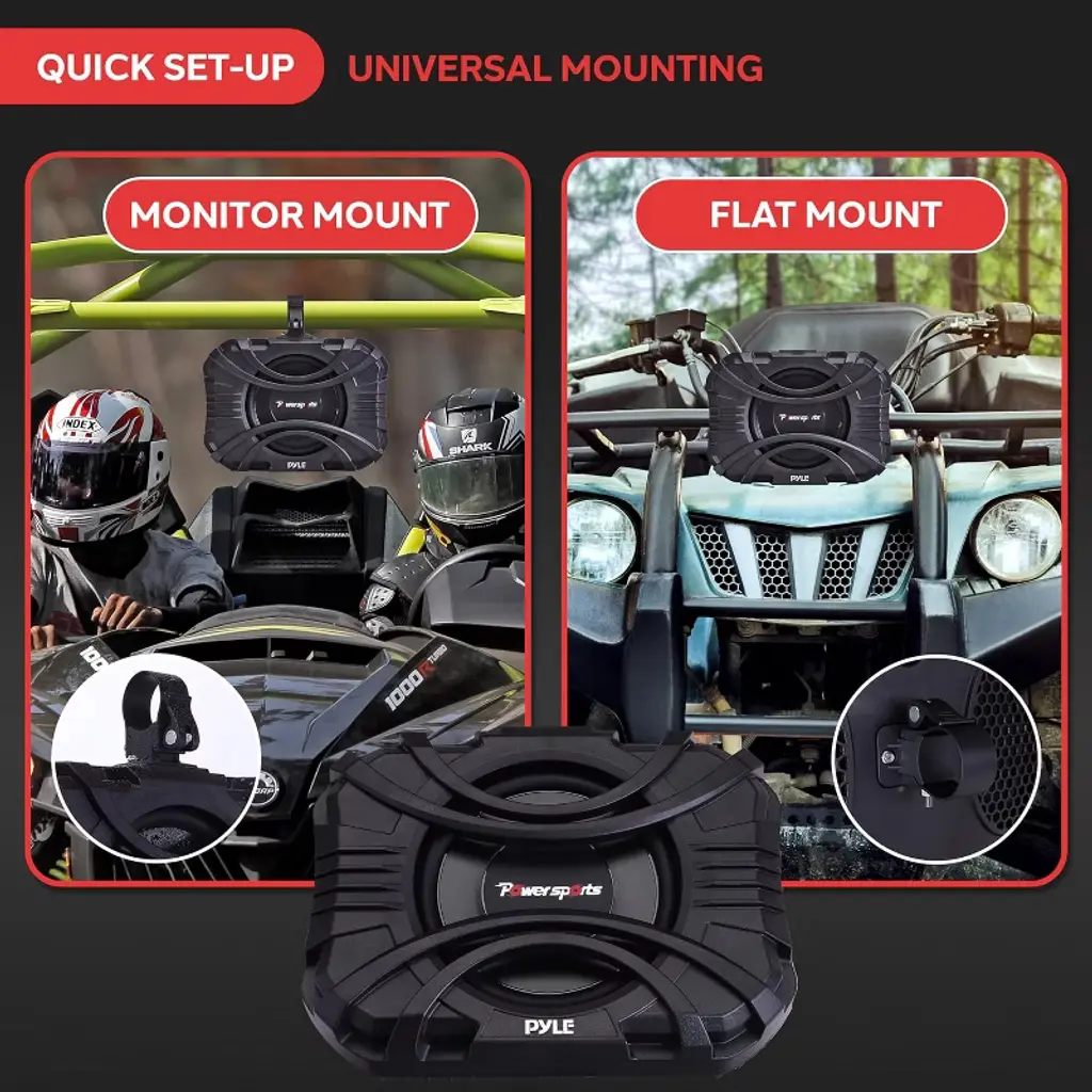 The Pyle 10" Shallow Subwoofer is the ideal solution for your ATV, UTV, or boat audio system. This high-performance subwoofer delivers a powerful 400 watts of output, providing deep, impactful bass tones. Its marine-grade waterproof rating (IP-X6) ensures reliable performance in wet and rugged environments. The subwoofer features a quick-mount design with a pre-installed aluminum bracket for easy installation on your vehicle. Built with durable ABS housing and a butyl rubber surround, it ensures long-lasting durability even under extreme conditions. Perfect for outdoor adventures and powersports, this subwoofer is also compatible with sealed enclosure audio setups for customized sound.