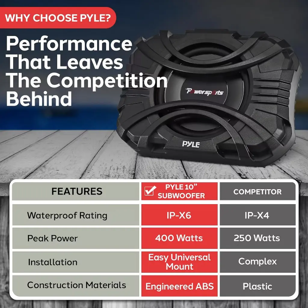 Pyle 10" Shallow Subwoofer For Atv/utv With Marine Grade Waterproof Rating Pssub101