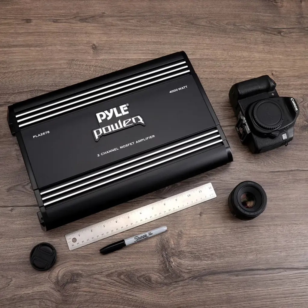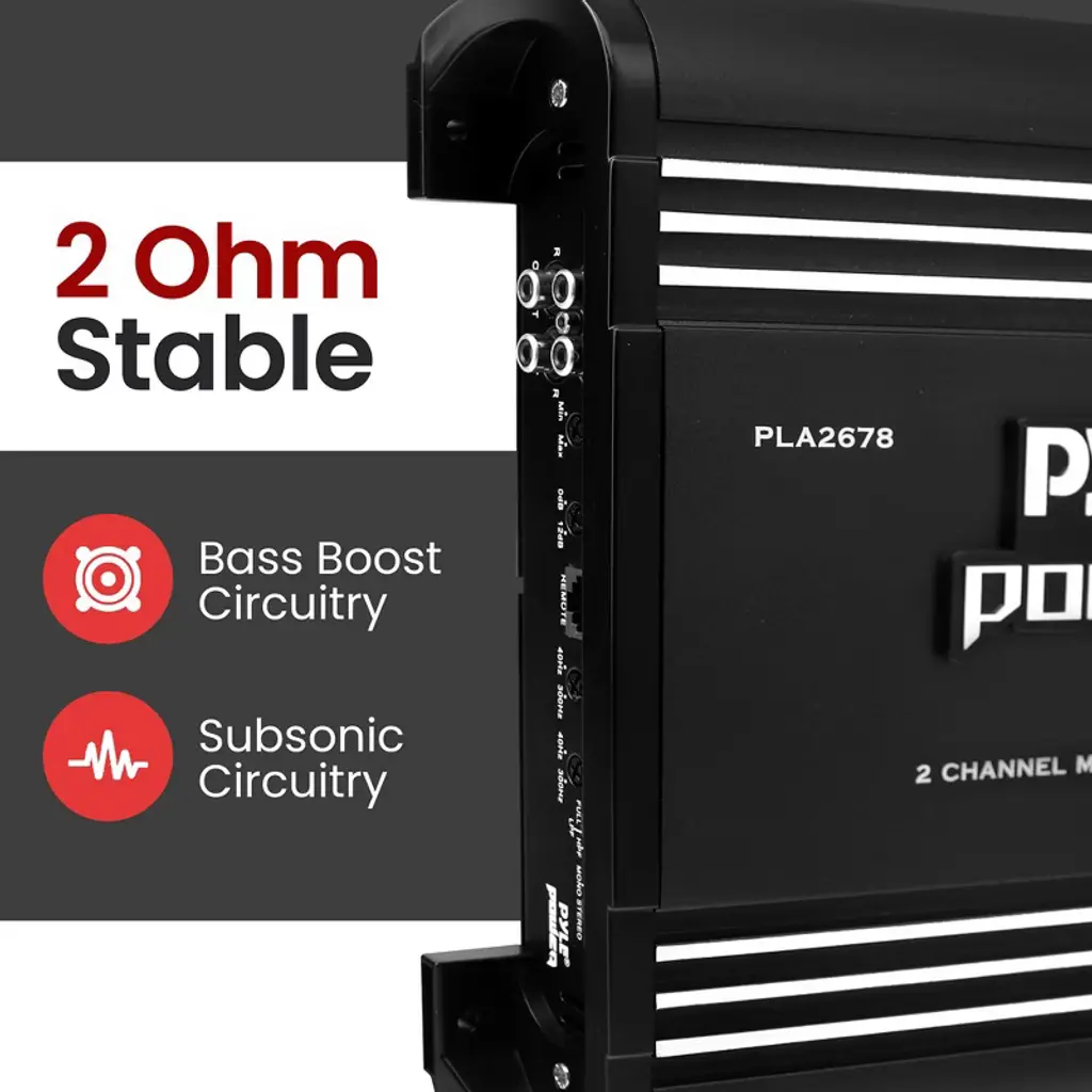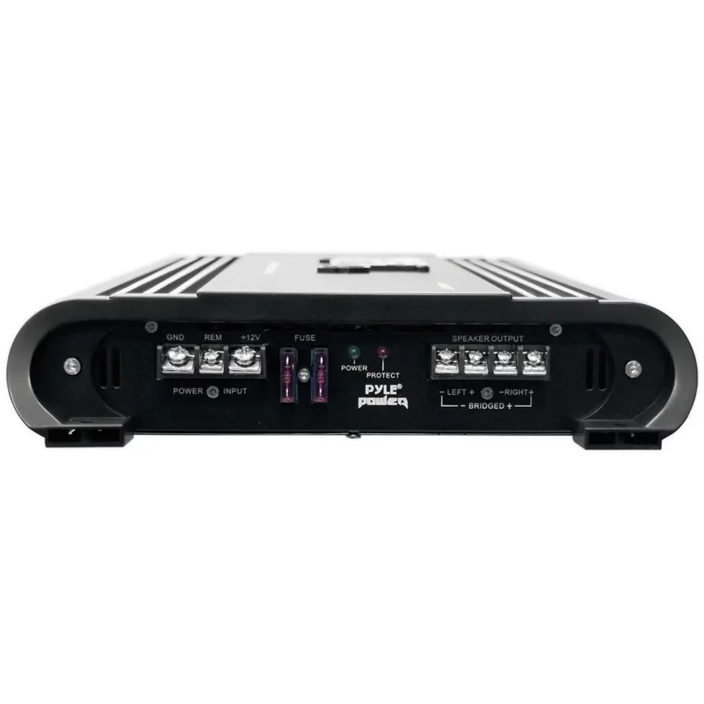 Pyle 2-Ch. Bridgeable Car Amplifier 4000 Watt Custom Terminal Block for Speaker Connection Thermal / Overload / Short Circuit Protection input Impedance: 47K Ohms Soft Turn On/ Off Advanced Protection Circuitry S/N Ratio: >90dB Dimensions:10.24''W x 2.21''H x 16.14''L Sold as: Unit Weight: 10.7 lbs.