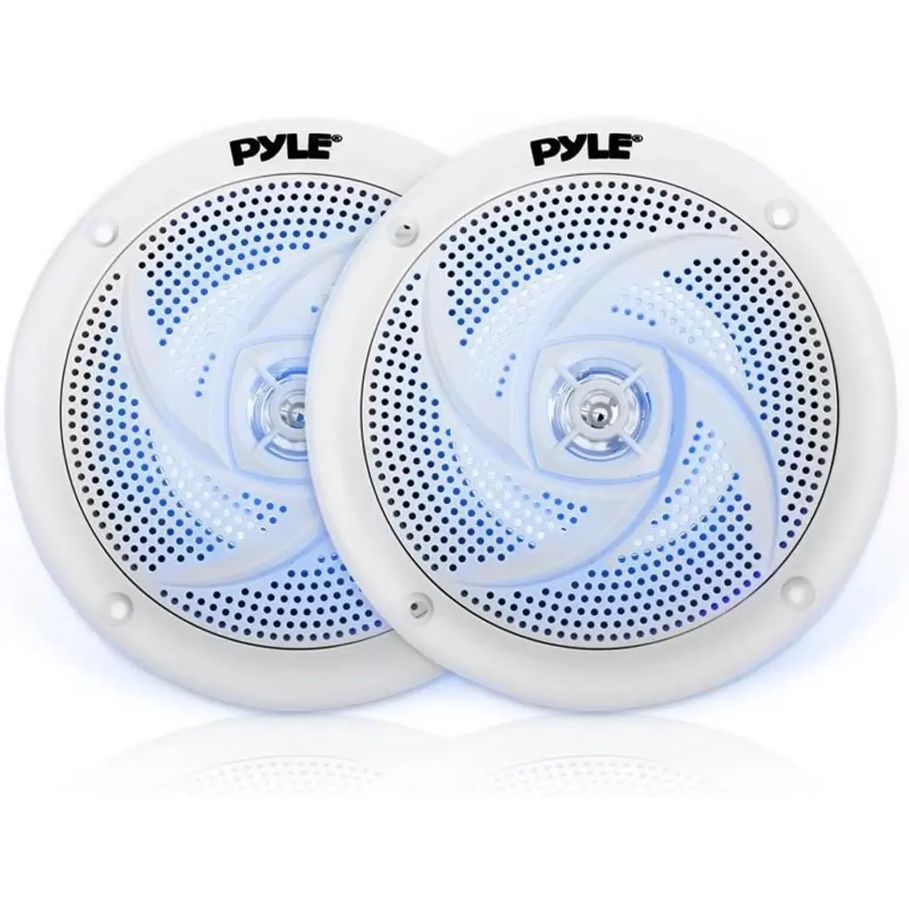 Pyle 6.5'' Waterproof Dual Speakers With Color-changing Led Lights (Plmrx68lew) - White