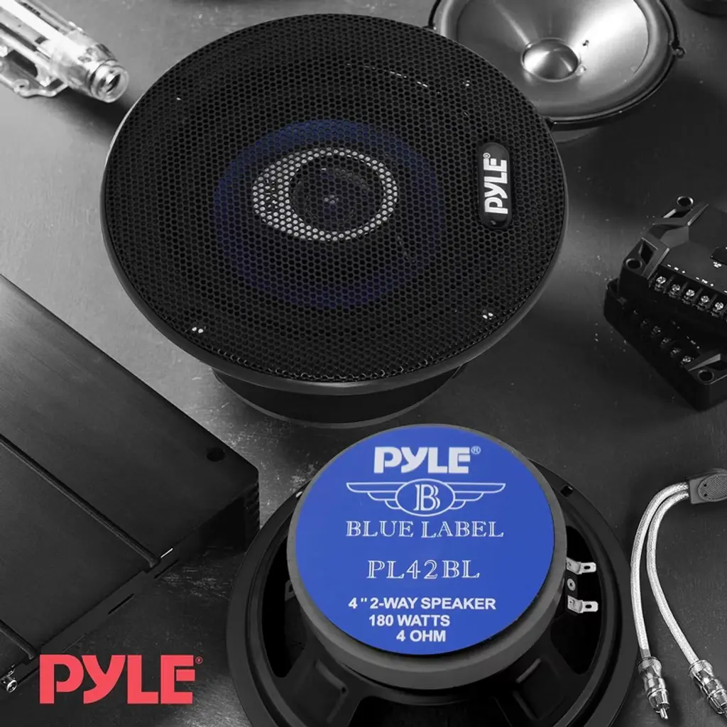 Pyle Blue Label 4" Two-way Car Speakers – Pl42bl, 180w Max, Blue Poly Cone, Neodymium Tweeter, Pair