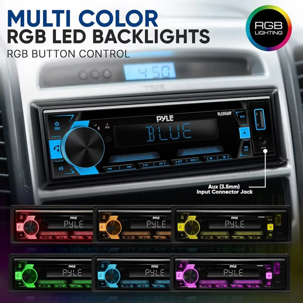 Upgrade your car's audio system with the Pyle PLCD54MP Bluetooth CD/MP3 Radio Receiver. This versatile single DIN receiver features Bluetooth for seamless wireless streaming, plus USB, SD, and AUX inputs for various music sources. The built-in CD player and MP3 playback ensure all your favorite tunes are accessible on the go. The unit offers a clear LCD display, 30 station presets, and includes a handy remote control for added convenience.