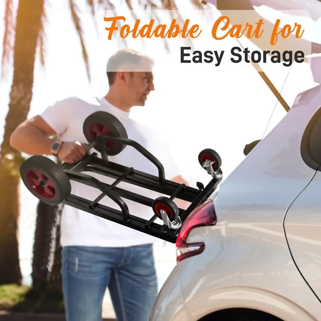 The Pyle PKEQ48 Adjustable Professional Equipment Cart is the ultimate multi-functional solution for transporting heavy gear, equipment, and supplies. This rugged, foldable cart offers up to 8 different configurations, making it perfect for a variety of needs, such as musicians, photographers, offices, warehouses, and deliveries. With its heavy-duty steel construction, adjustable size, and durable R-Trac wheels, this cart can easily handle up to 300 lbs of weight across various terrains.