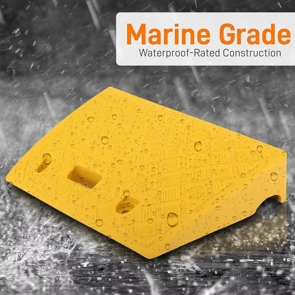 The Pyle Portable Curb Ramp Set is a heavy-duty, 27-inch plastic threshold ramp kit designed for durability and versatility. These ramps feature a robust plastic construction capable of supporting up to 3.3 tons, making them ideal for various applications, including curbs, driveways, and loading docks. The anti-slip textured surface ensures safety during use, while the lightweight, portable design allows for easy transportation and storage. This set includes two ramp pieces, providing ample coverage and convenience. Perfect for both residential and commercial use, the Pyle Portable Curb Ramp Set offers a reliable solution for overcoming height differences with ease.