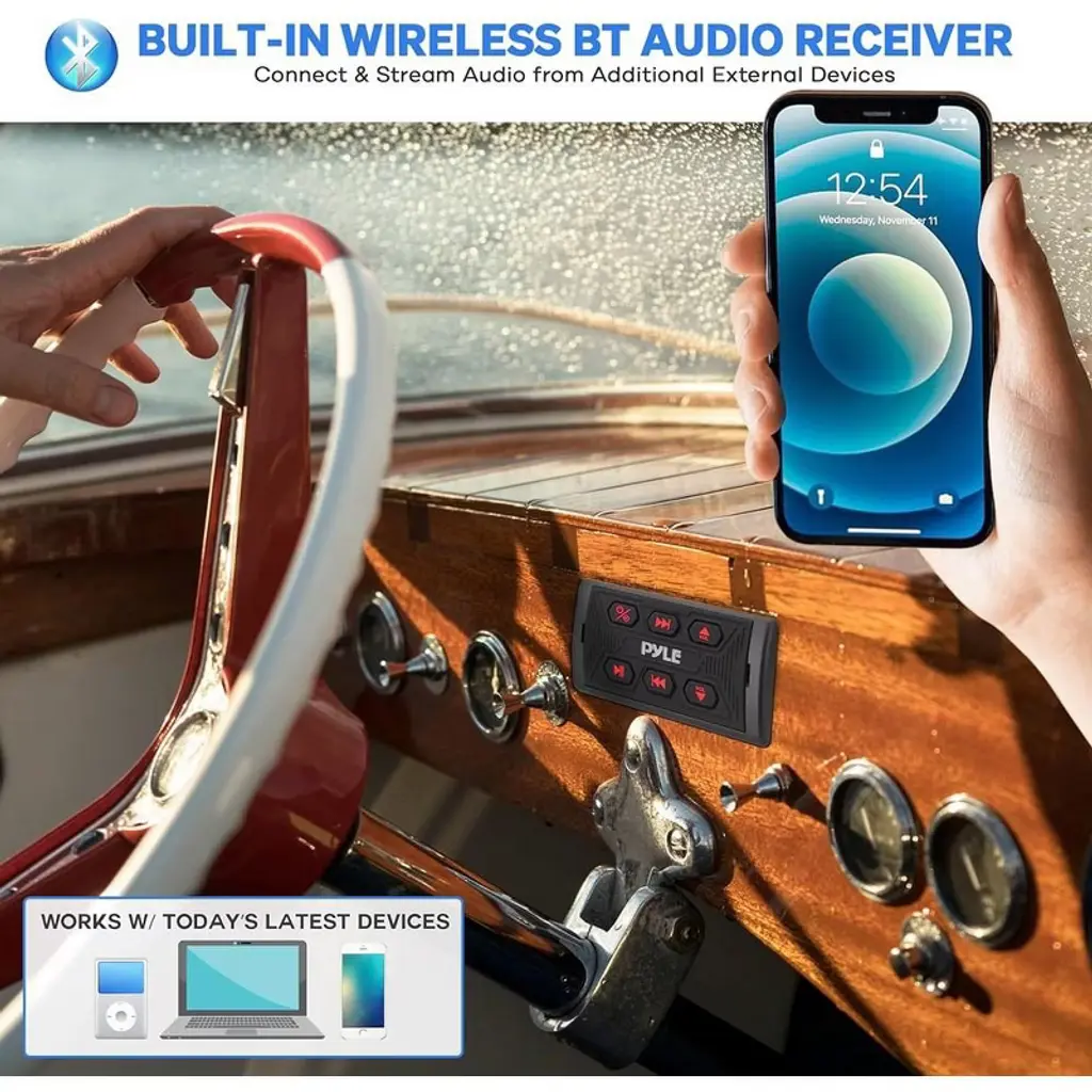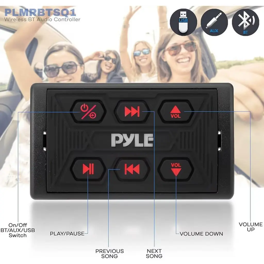 Pyle Wireless Bt Audio Controller - Waterproof-rated Marine Receiver Remote Control For Car, Truck, Boat, Atv, Utv, Powersport Vehicles