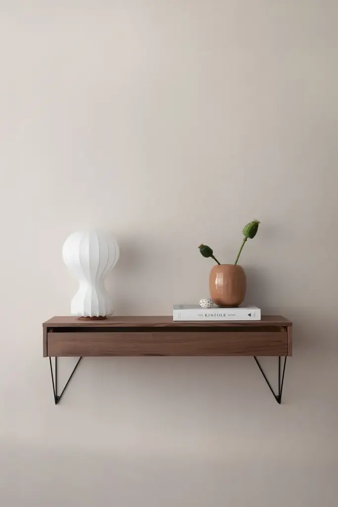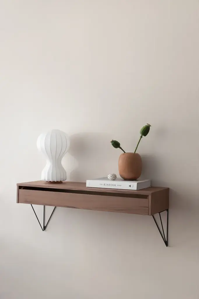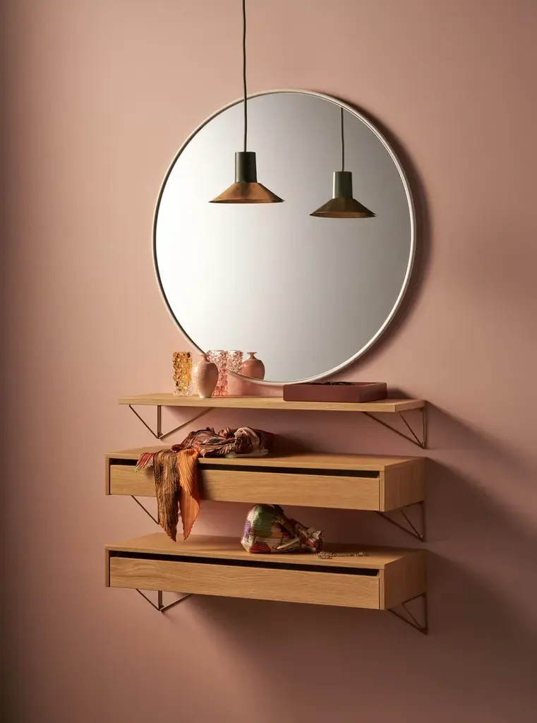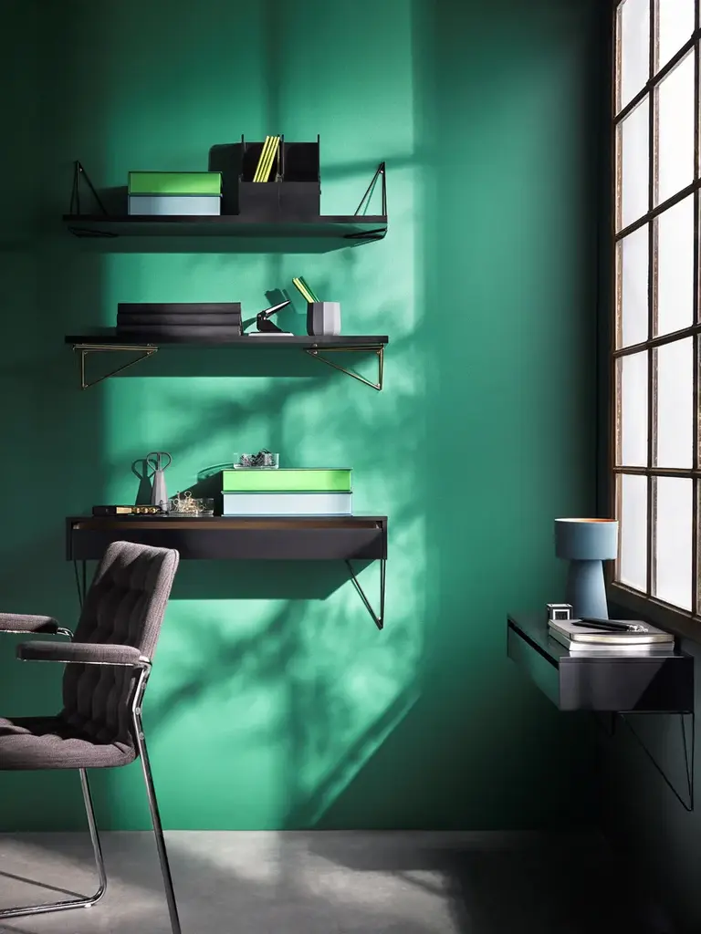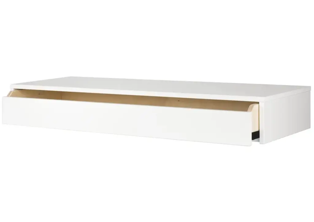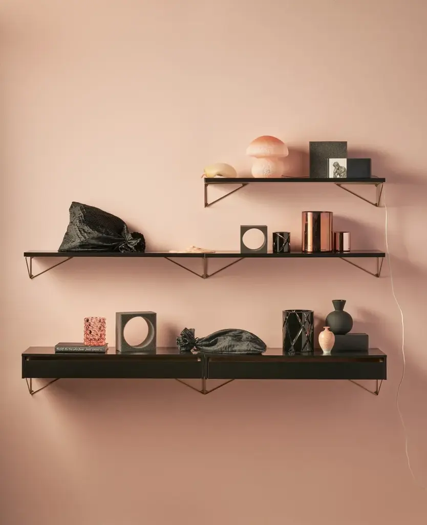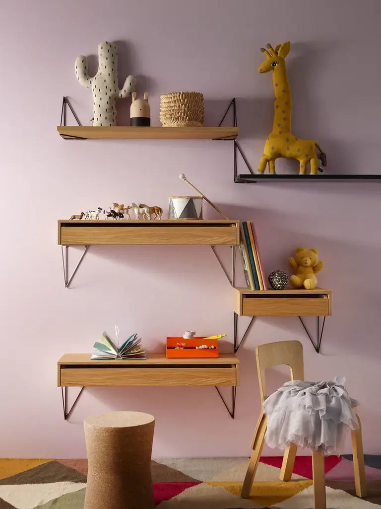 This drawer is part of the Pythagoras shelving system. It's available in two different sizes and is mounted with the Pythagoras Brackets. Mix and match colors to create your own unique wall. Let your creativity go wild or build a sober wall - the Pythagoras collection is made to be unique! At the back of the drawer, there are two pre-drilled holes adapted to the metal hooks that comes with the shelf to secure it to the brackets. You can of course add more shelves and drawers to create a larger shelving system. Do not forget to add the Pythagoras Brackets.The Pythagoras bracket system is a complete extension from the Pythagorean equation; if two sides of a right-angled triangle are known, the length of the third can be revealed.This collection is produced in Småland and the Pythagoras brackets are made of 100% recycled metal. The Pythagoras PLAY shelves are made from Nordic sustainable forestry – for every tree used, two new trees are planted.