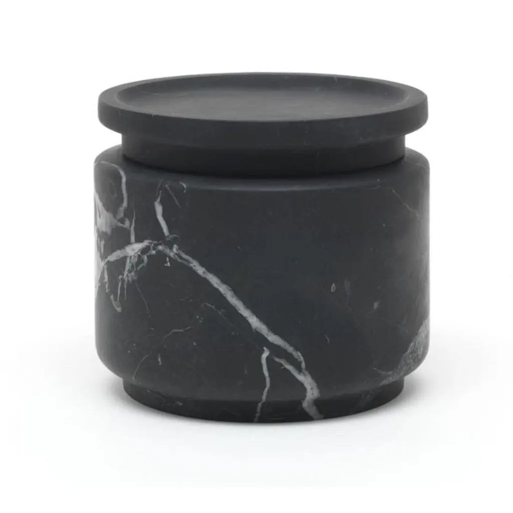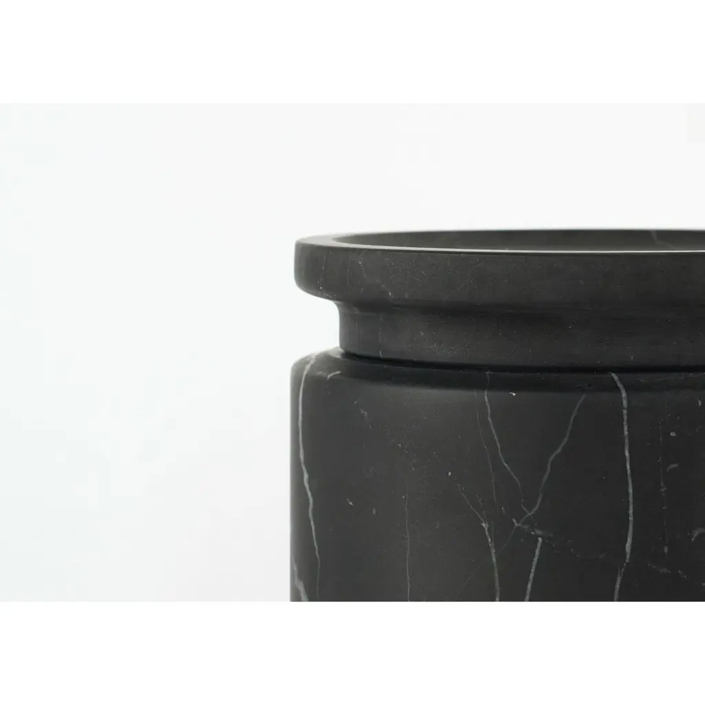 Pyxis - small pot - black by Ivan ColominasPyxis CollectionDimensions: 12.6 x 11 cmMaterials: Nero MarquiniaAlso available: Bianco Michelangelo, medium & largeA refined collection articulated through cylinders that vary only in size and doesn’t ignore that the best ally in the thorough organization of a space is the container, which thanks to minute details, becomes increasingly ours.Ivan Colominas studied industrial design at the UCH-CEU in Valencia, where he also attained a Master’s of Transportation Design. The collaboration with several international firms has, in recent years, led him to work across a diverse range of sectors: from automotive, to sporting goods and home accessories.His design research is heavily influenced by 20th century iconography: focussed on delivering products that, while belonging to a digital age, convey analogue qualities. Colominas’ work has garnered six Red Dot Awards and has been published in specialised media worldwide.
