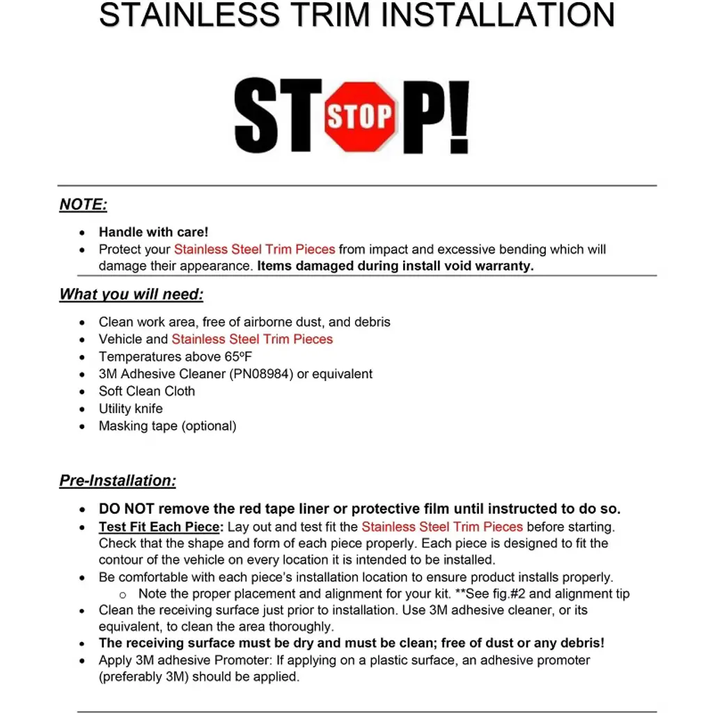 Stainless Steel Accent trim for your vehicle is unique, creative and individualized! It is intended to enhance your car or truck to provide a unique aesthetic upgrade. It is pre-formed for each model from a Highly Polished Stainless Steel, with a full coverage 3M acrylic foam adhesive backing to enhance the look of your vehicle.