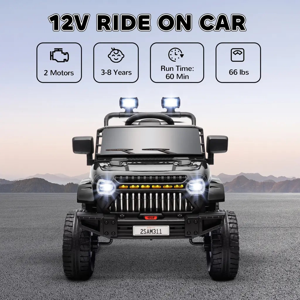 Qaba 12v Ride On Truck, Battery Powered Kids Electric Car With Spring Suspension, Remote, Led Headlights, Horn, Usb Music - Black