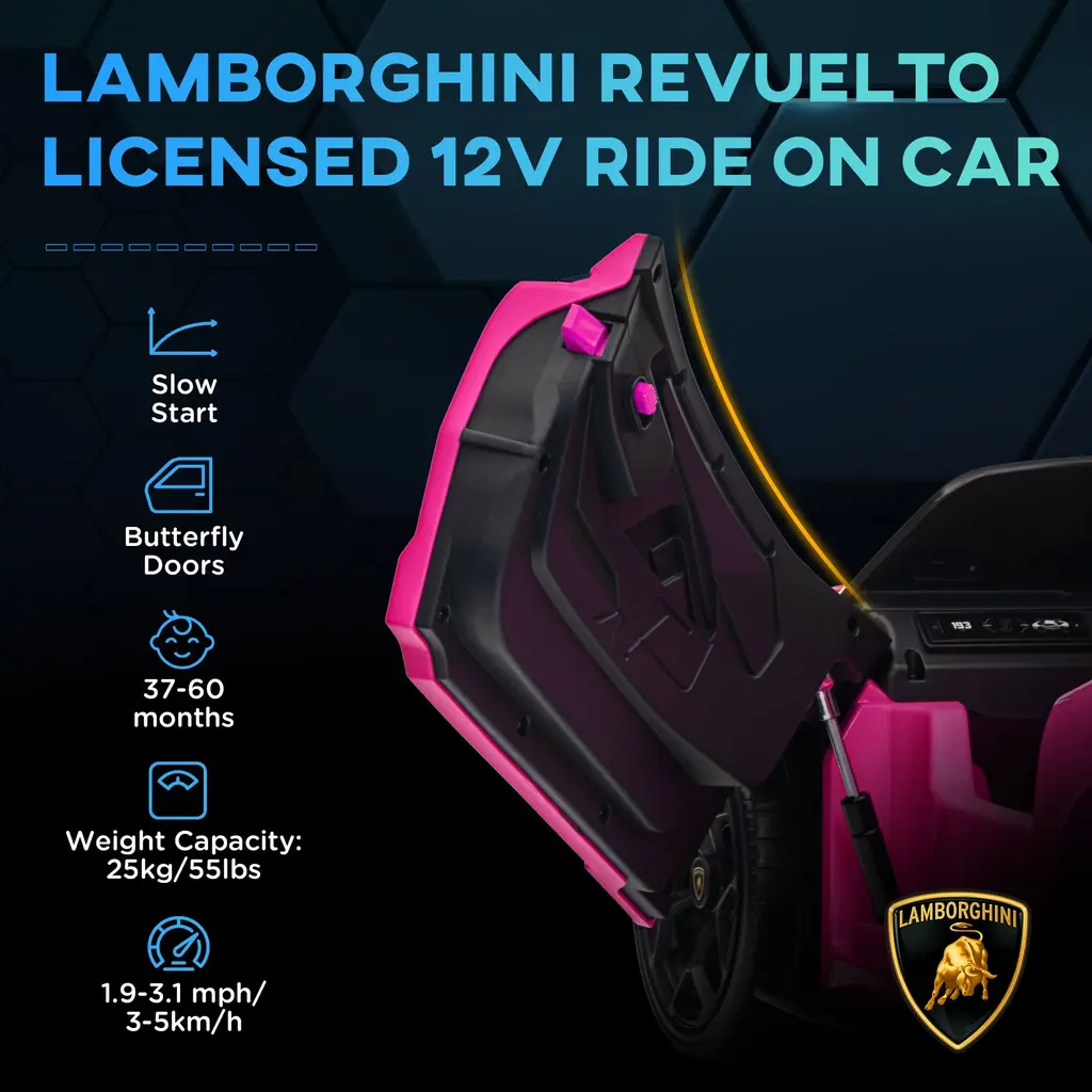 Qaba Lamborghini Revuelto Licensed Kids Ride On Car W/ Suspension - Pink