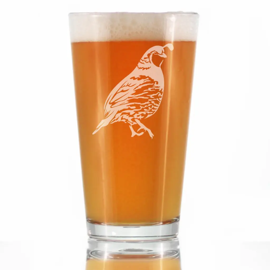 Quail - Beer Pint Glass - Quail Hunting Gifts - 16 Ounce - Clear