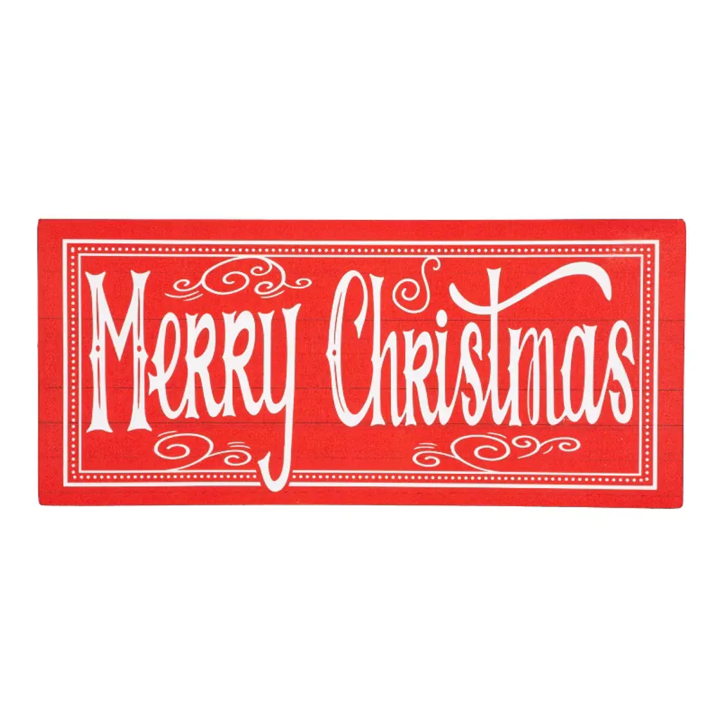 Welcome everyone from the family to Santa Claus himself home with this Sassafras switch mat. It features a bright red background with white borders and a sweet "Merry Christmas" message. The mildew resistant mat is ideal for indoor or outdoor use.