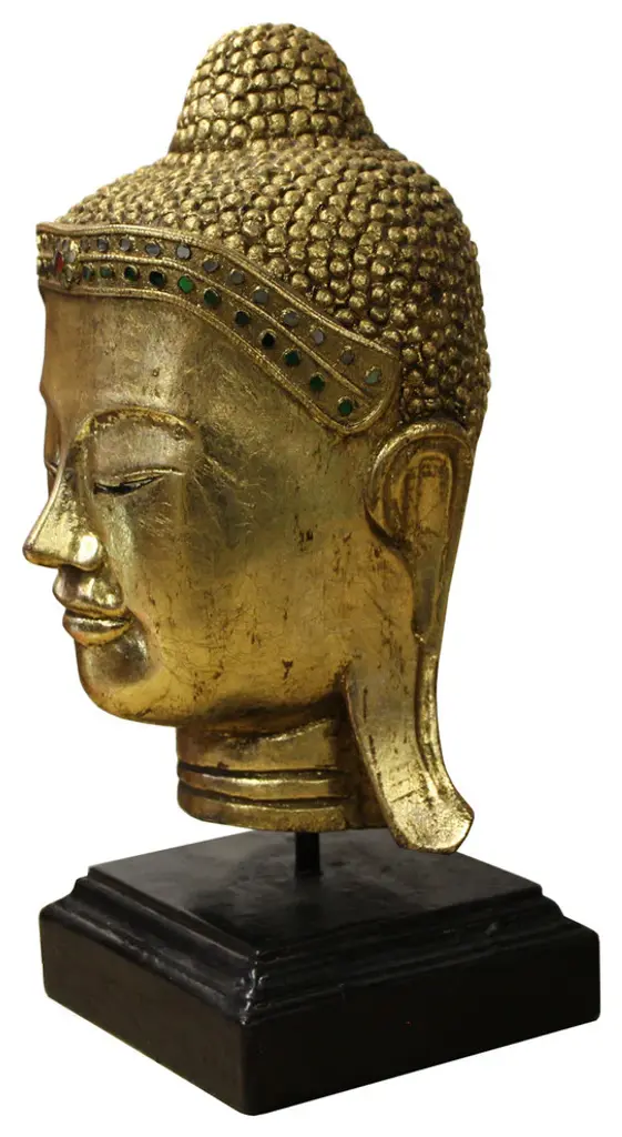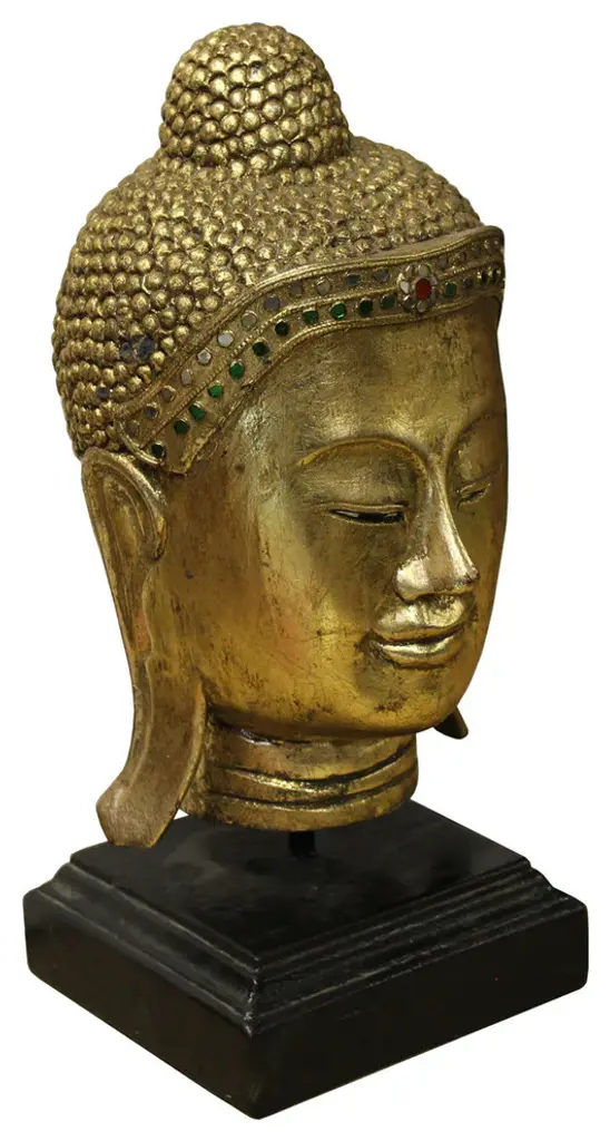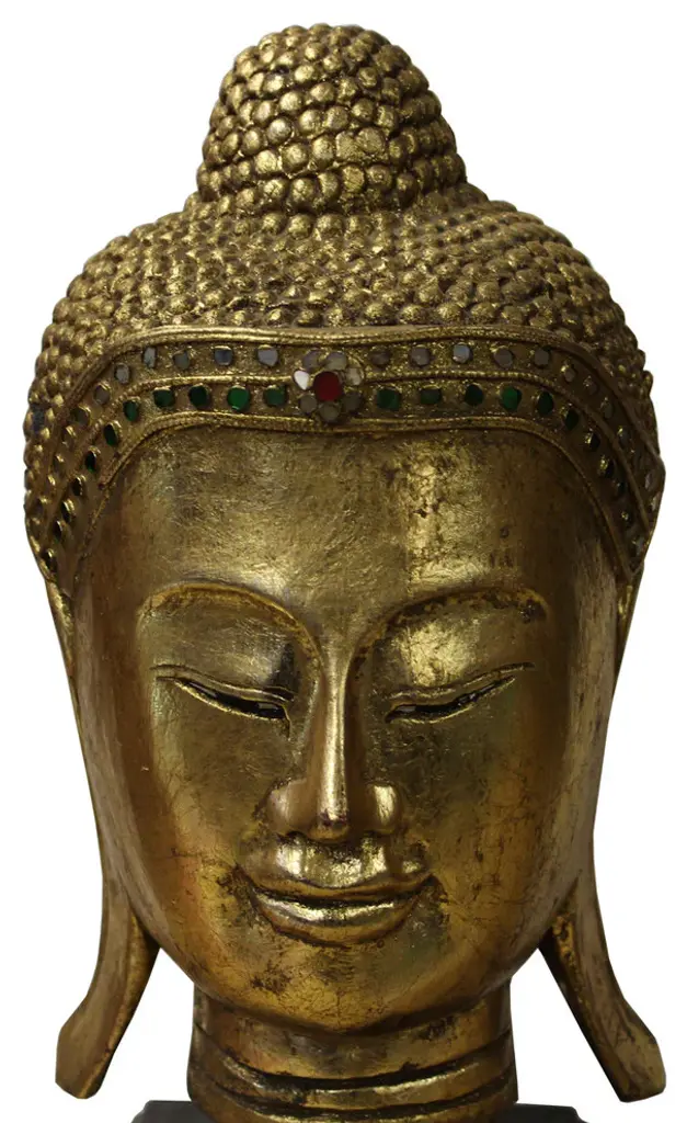 Quality Wood Gold Color Serene Peaceful Meditate Buddha Head On Stand Hn270