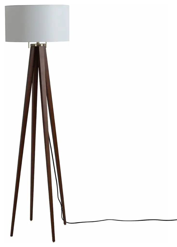 Quattro Table Lamp - Dark Walnut Wood Finish & Weathered Brass, White Linen Shade