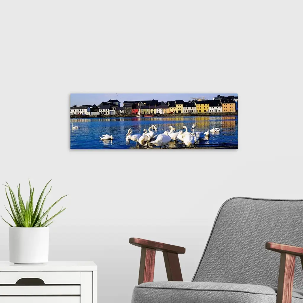 Quay With Swans, Galway City, County Galway, Ireland wall art for home and office decor. Discover canvas art prints, photos, mural, big canvas art and framed wall art in GreatBigCanvas.com's varied collections.