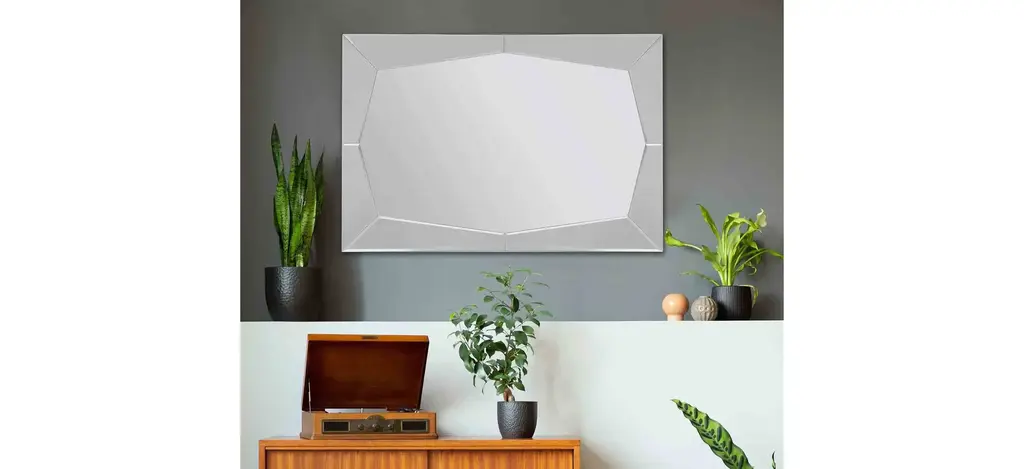 The Queen Etched Mirror has a unique geometric border, generating reflections from all angles, without a traditional frame. Its minimalistic lines are ideal to place near a window, allowing the natural rays to reflect into your room. Hang this decorative wall mirror by a door or place two with contemporary sconces, making it easy to check your appearance as you walk by.
