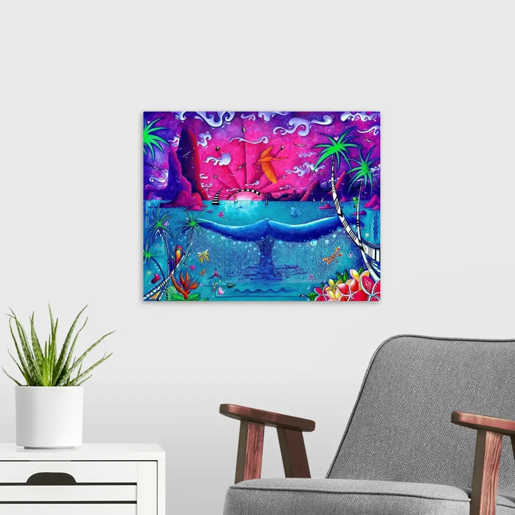 Queen Of The Sea - Colorful Pop Whale Tail wall art for home and office decor. Discover canvas art prints, photos, mural, big canvas art and framed wall art in GreatBigCanvas.com's varied collections.
