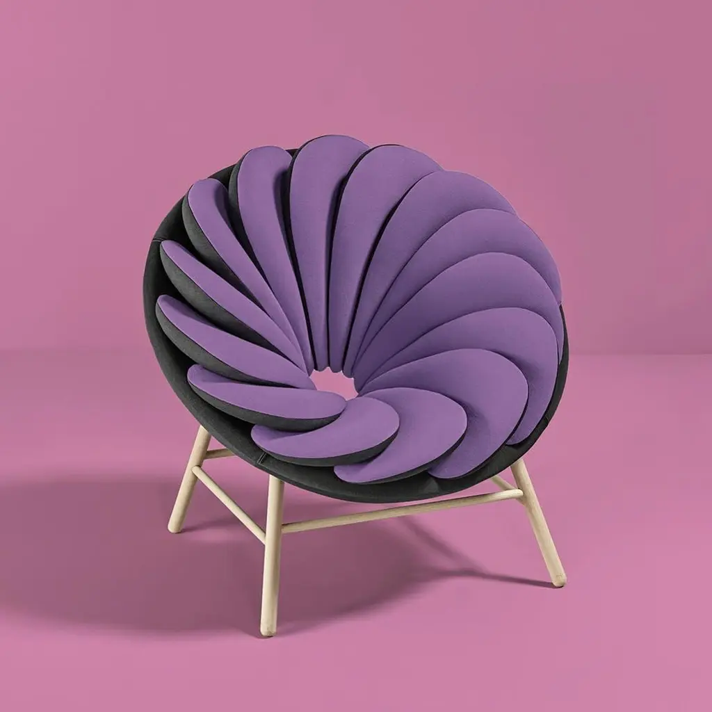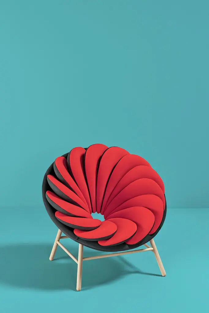 Quetzal surprises, attracts and traps, evoquing on us the same magical feeling and the same admiration with which we watch the Quetzal bird taking off and flying into the sky in its natural Habitat.14 overlapped bicolor pillows manage to create an amazing visual impact and provide the product with the unique feature of being able to change the main color of the armchair in the blink of an eye.The color duality makes it an extremely versatile, visual and interactive design.Dimensions: 90 x 100 x 100 cmMaterials: Iron structure.Structure stuffed with polyurethane 25kg.Cushions stuffed with polyurethane TXED40 covered with polyester fibre.Wooden leg.