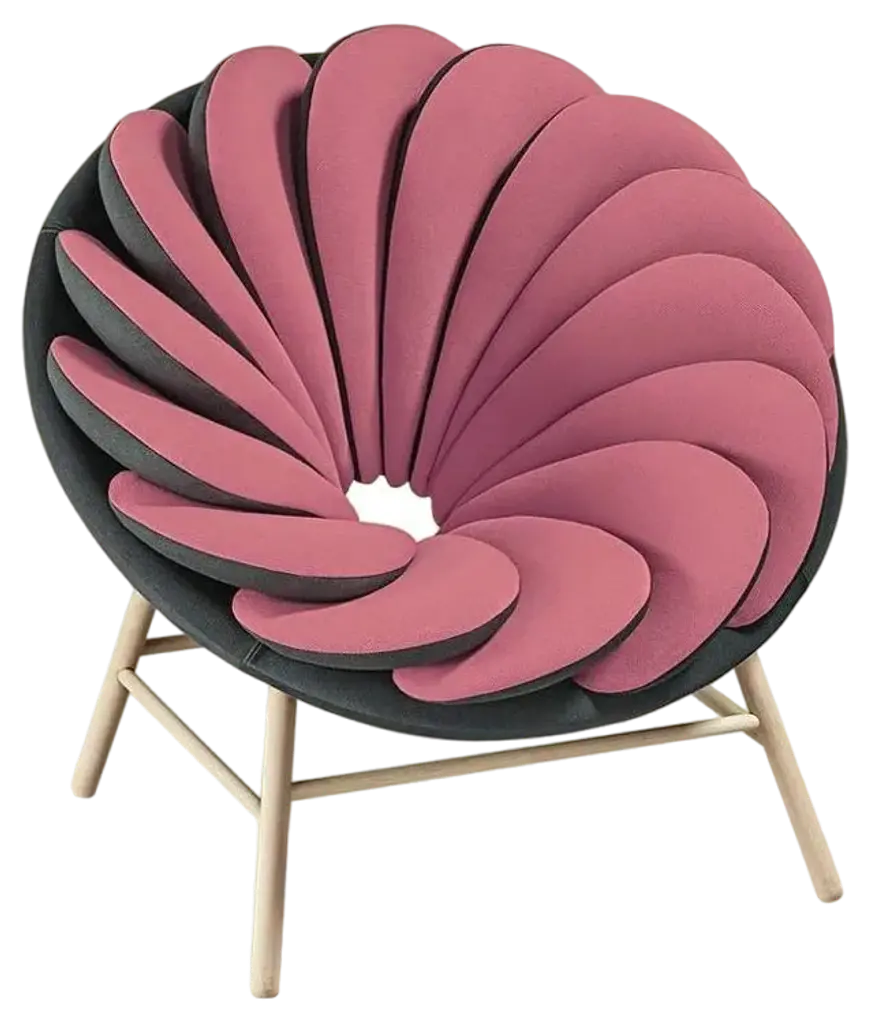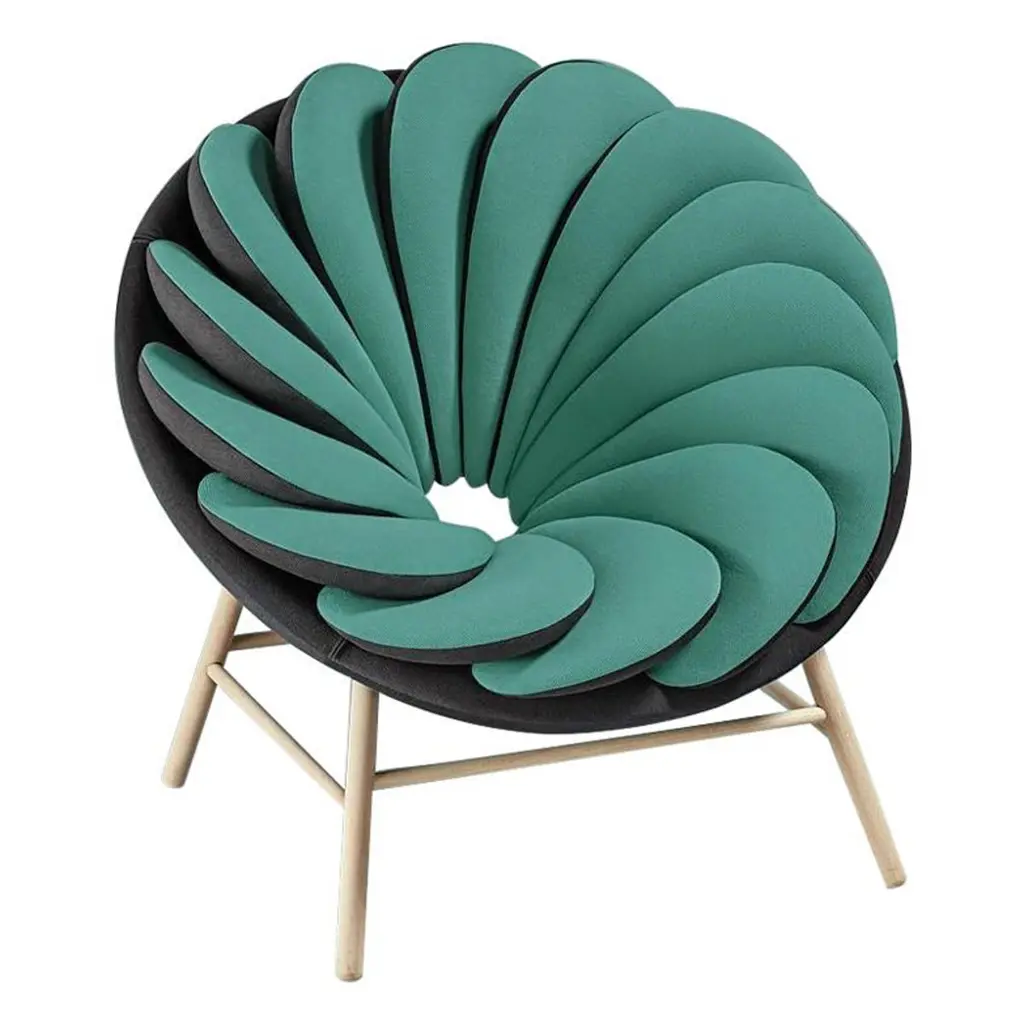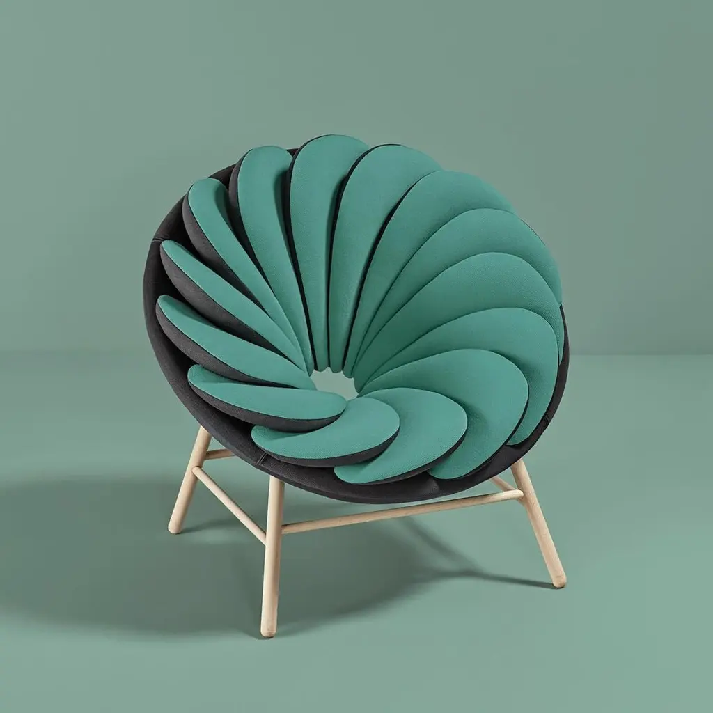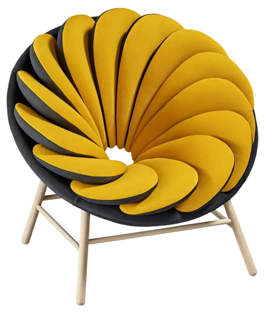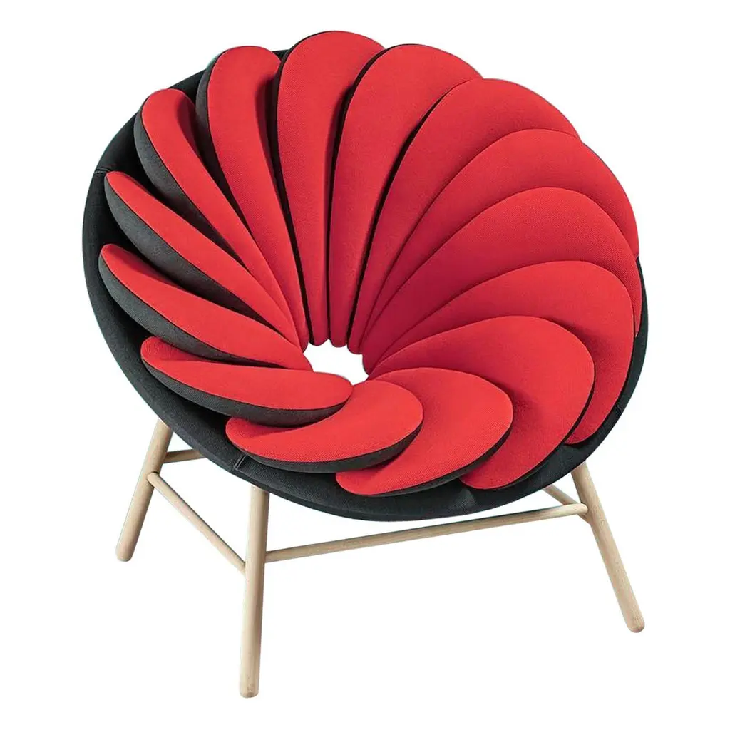 Quetzal surprises, attracts and traps, evoquing on us the same magical feeling and the same admiration with which we watch the Quetzal bird taking off and flying into the sky in its natural Habitat.14 overlapped bicolor pillows manage to create an amazing visual impact and provide the product with the unique feature of being able to change the main color of the armchair in the blink of an eye.The color duality makes it an extremely versatile, visual and interactive design.Dimensions: 90 x 100 x 100 cmMaterials: Iron structure.Structure stuffed with polyurethane 25kg.Cushions stuffed with polyurethane TXED40 covered with polyester fibre.Wooden leg.