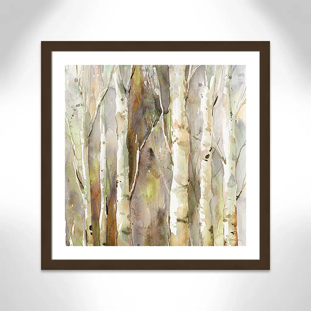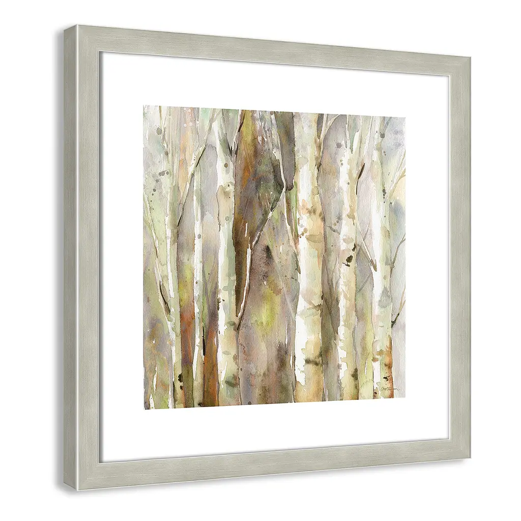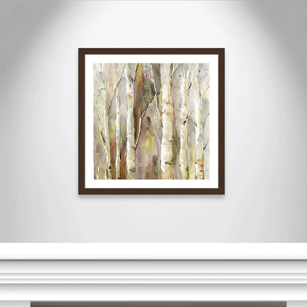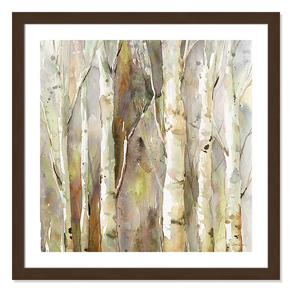 This soothing watercolor landscape image featuring a grove of beautiful birch trees, 'Quiet Morning I', combines a neutral palette with breathtaking simplicity to emulate the beauty and bliss of nature. Finished in a modern frame made of PS materials, this is the perfect addition to your walls. Archival fine art giclée print on acid-free and lignin-free 100% cotton rag paper; image includes a bright white self-matting border Printed with gallery-quality inks using the finest giclée print technology for unsurpassed color gamut and clarity Lightweight and finished under shatter-resistant acrylic; hanging hardware attached for easy and secure installation Handcrafted in the USA and ships with a Certificate of Authenticity Lightweight and finished under shatter-resistant acrylic