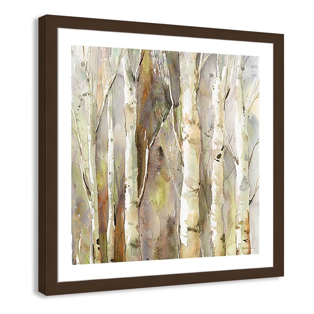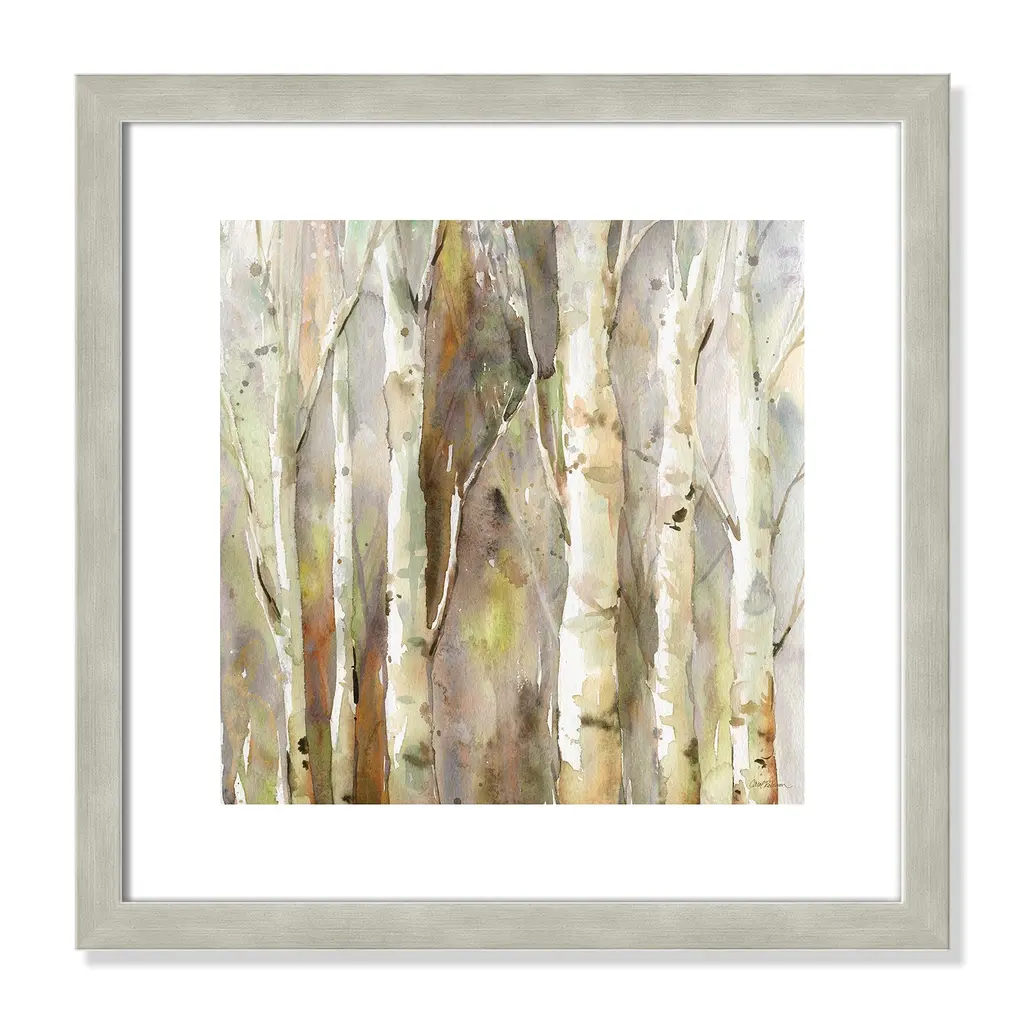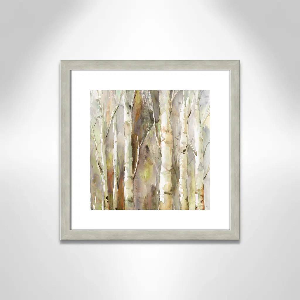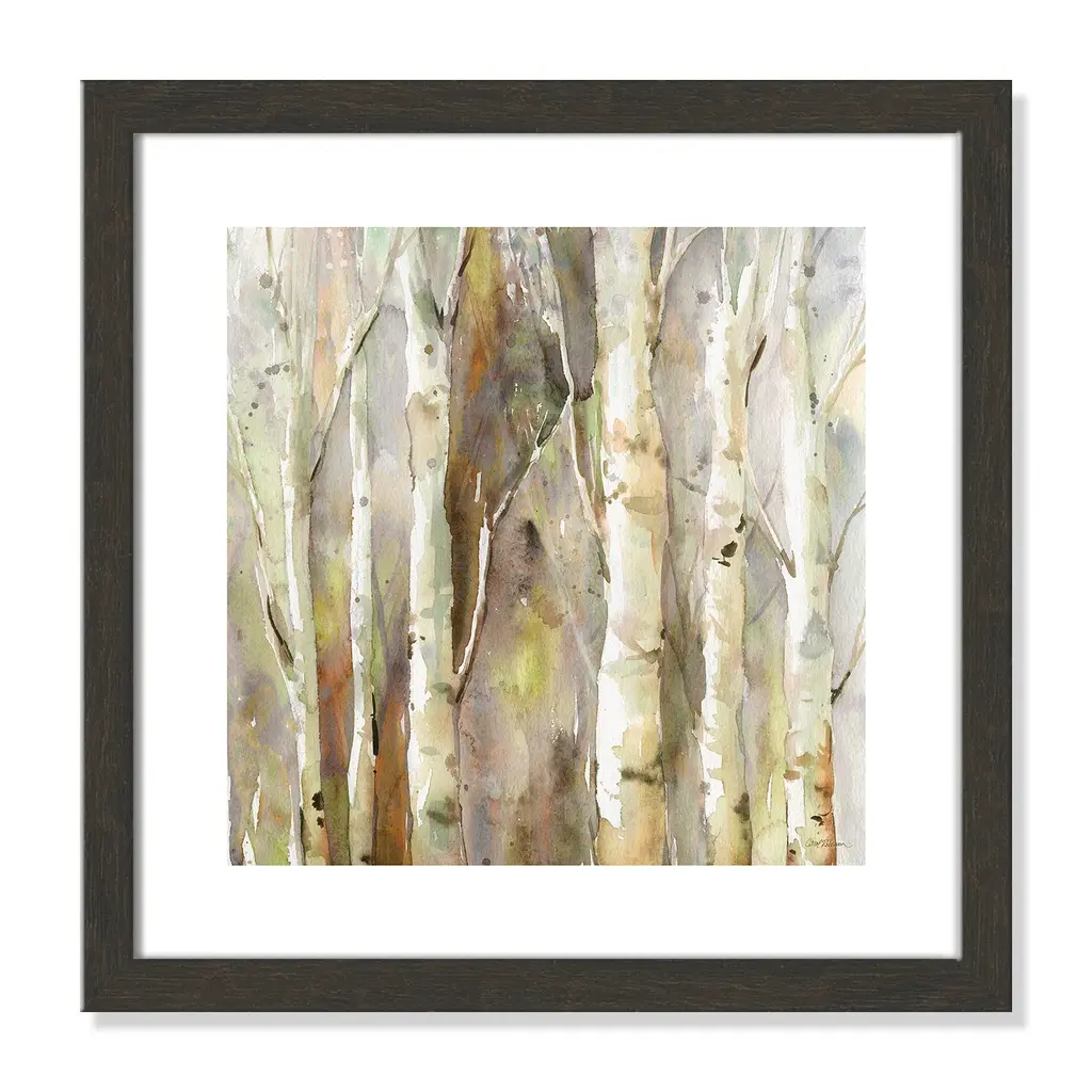 This soothing watercolor landscape image featuring a grove of beautiful birch trees, 'Quiet Morning I', combines a neutral palette with breathtaking simplicity to emulate the beauty and bliss of nature. Finished in a modern frame made of PS materials, this is the perfect addition to your walls. Archival fine art giclée print on acid-free and lignin-free 100% cotton rag paper; image includes a bright white self-matting border Printed with gallery-quality inks using the finest giclée print technology for unsurpassed color gamut and clarity Lightweight and finished under shatter-resistant acrylic; hanging hardware attached for easy and secure installation Handcrafted in the USA and ships with a Certificate of Authenticity Lightweight and finished under shatter-resistant acrylic