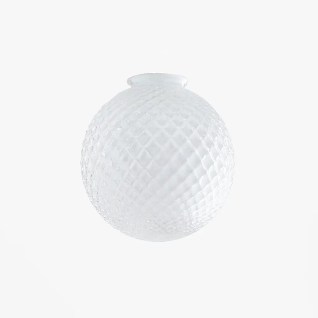 An iconic, timeless addition to any room, the Quilted Globe Shade complements any decor style. Featuring textured iridescent glass, this vintage-inspired shade will add a touch of charm to your kitchen, bathroom, and dining room alike. Choose from a translucent white opal glass or clear shade. A Schoolhouse Exclusive.