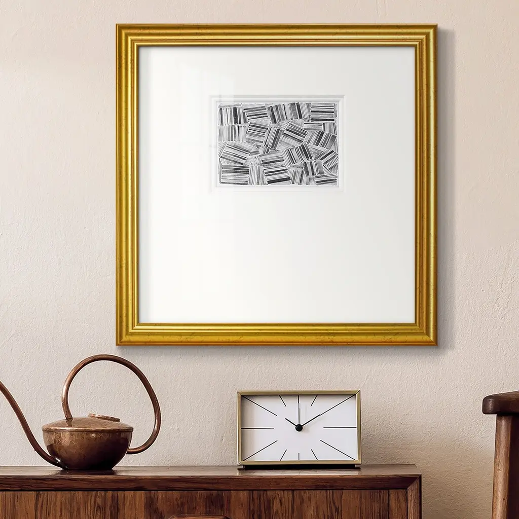 Quilted Pattern IIIPremium Framed Print A framed cold pressed paper print featuring superior double matting and quality frame. 2 SIZES AVAILABLE 16''X16''' - Overall Size 20''X20''' - Overall Size Each piece is made to order. Each piece comes with hanging hardware. Made in the USA Ready to Hang Giclee Paper Print Plexiglass Beveled Matt Board Double Matte Board