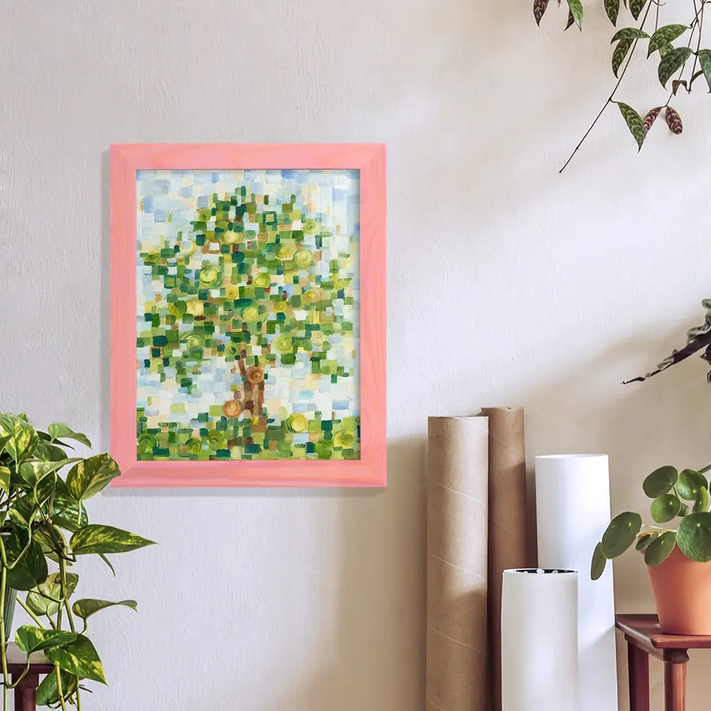 Quilted Tree I -EZ SWITCH Framed Print w/glass-Cherry Red A delightful, framed print. Featuring a solid wood frame with real wood glass. This premium print is giclee quality. In addition, every frame features a removable back and table top stand. This allows you to change your art in the future or to just stand the art on a table for a new look. We are sure you'll enjoy our new series of EZ SWITCH Framed Art. Solid Wood Frame Real Glass Removable / Replaceable Art Built in Tabletop Stand Sizes range from 4x6 up to 12x15 - buy just one or pair them up as sets as you see fit.