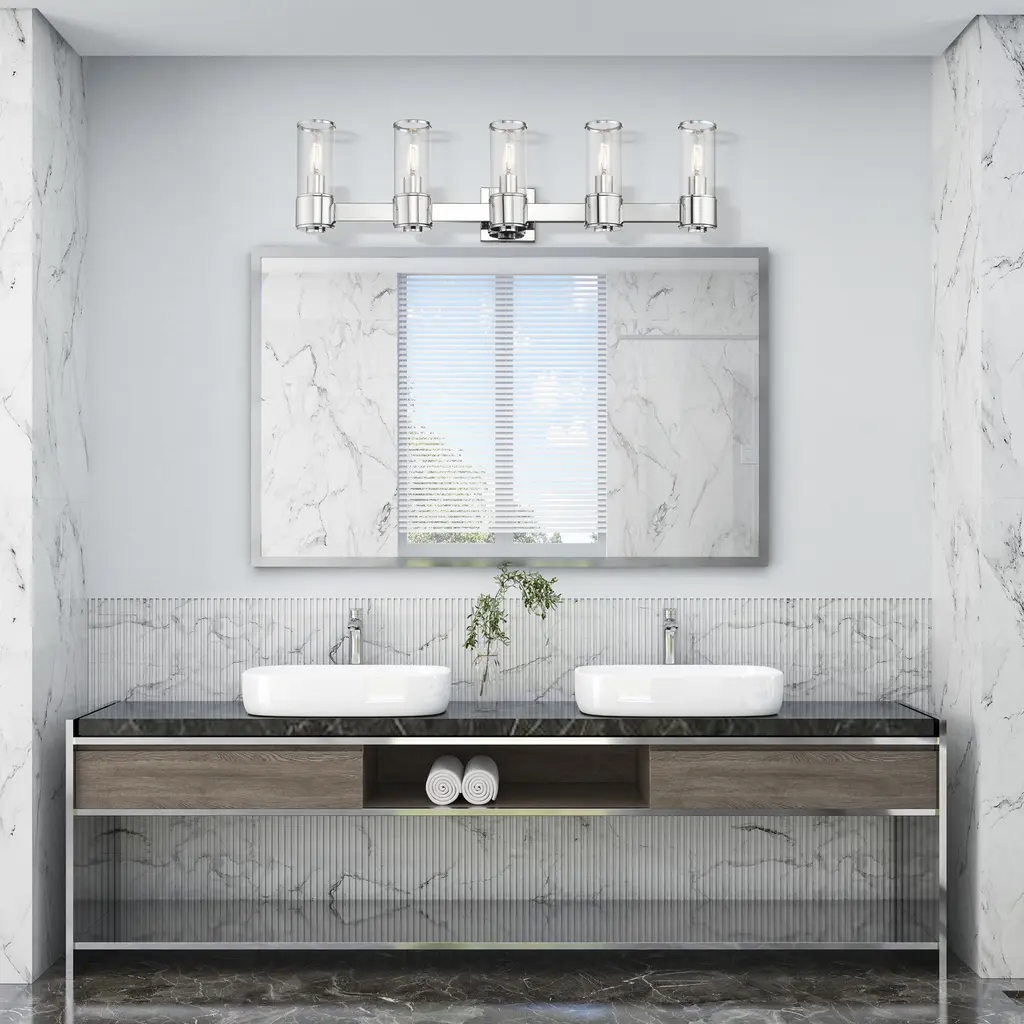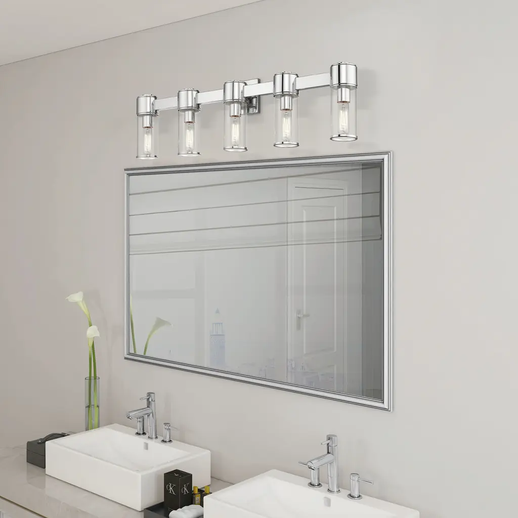 5 Light Polished Chrome Large Vanity Sconce