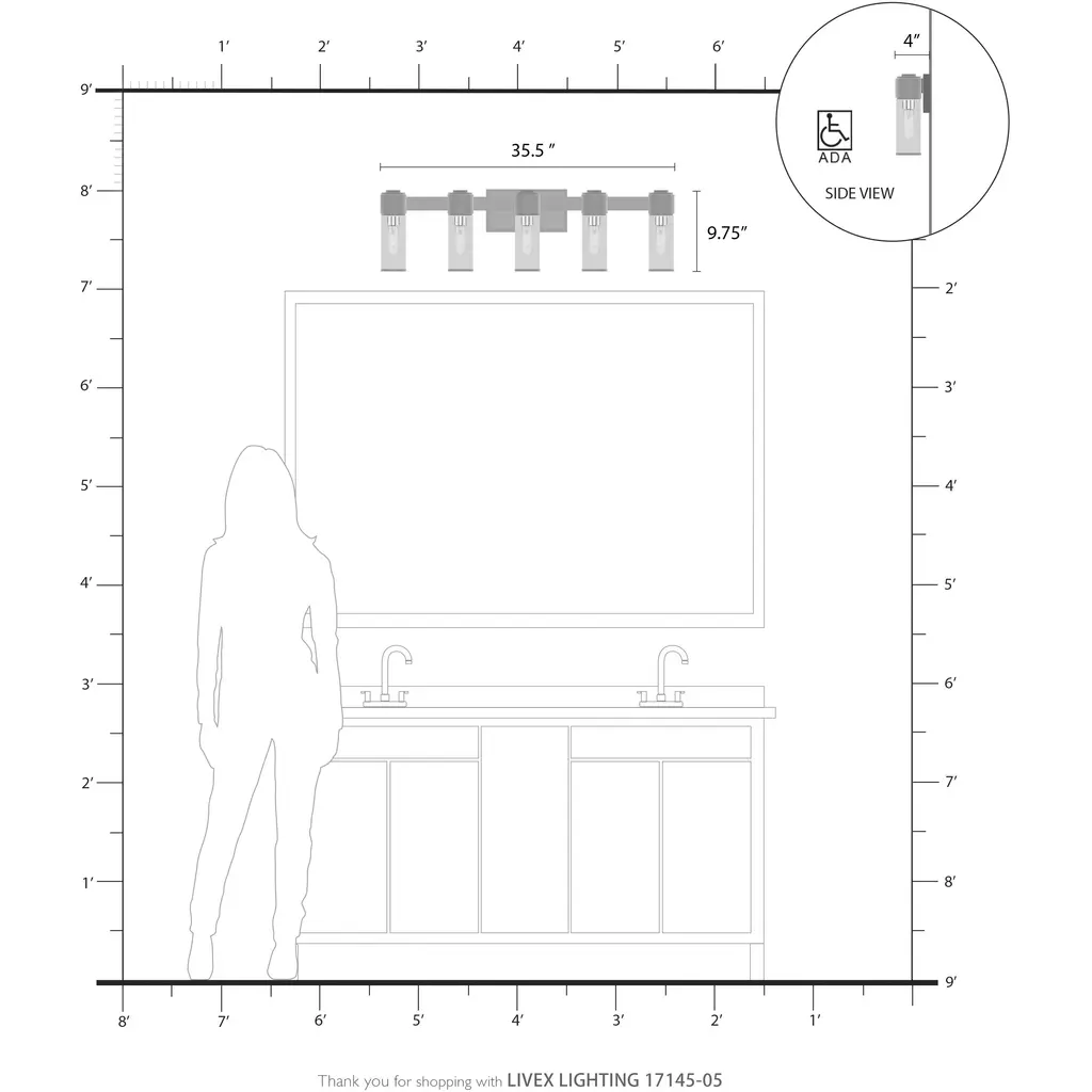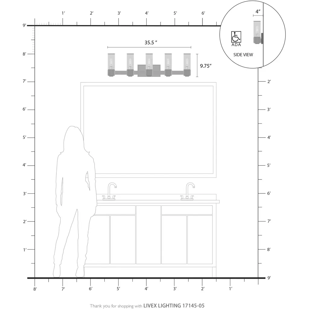 Quincy 5 Light 35.5 Inch Polished Chrome Vanity Wall Sconce Wall Light, Large