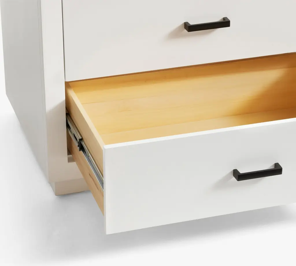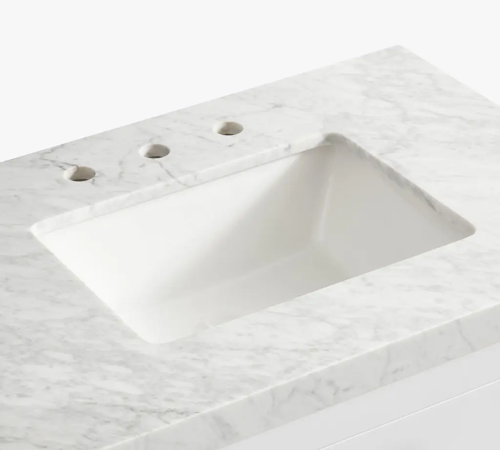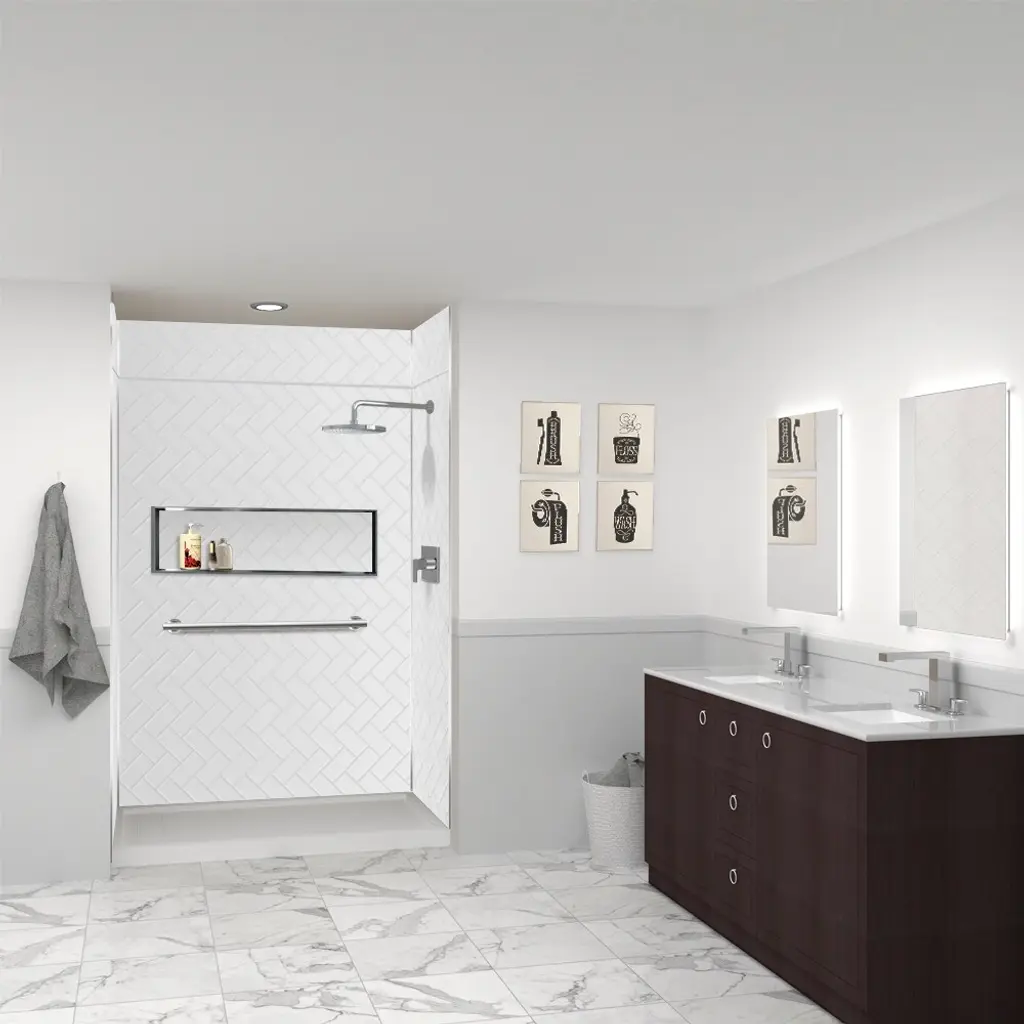 Whether you’re doing a quick remodel or a full-on reno, our Quinn Collection gives you a timeless custom built-in look. The crisp white vanity is accented with industrial metal finishes and pops of black for a modern edge.
