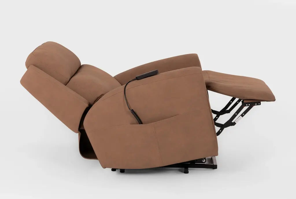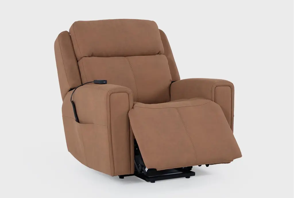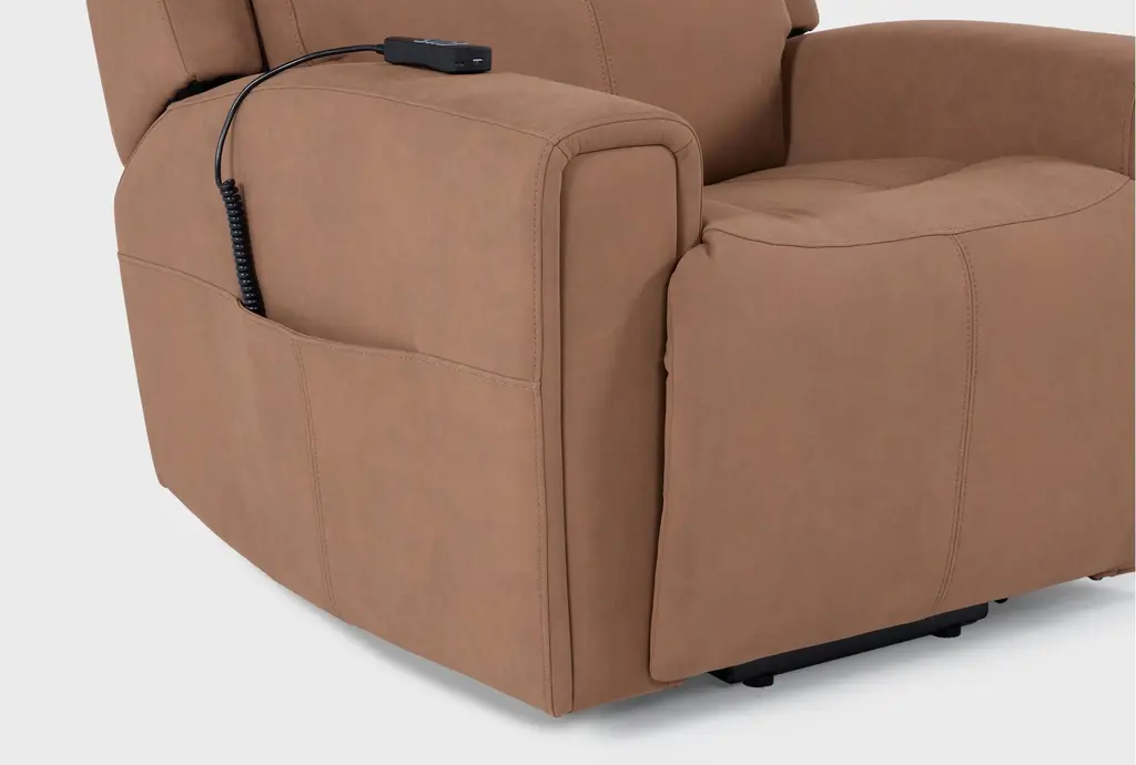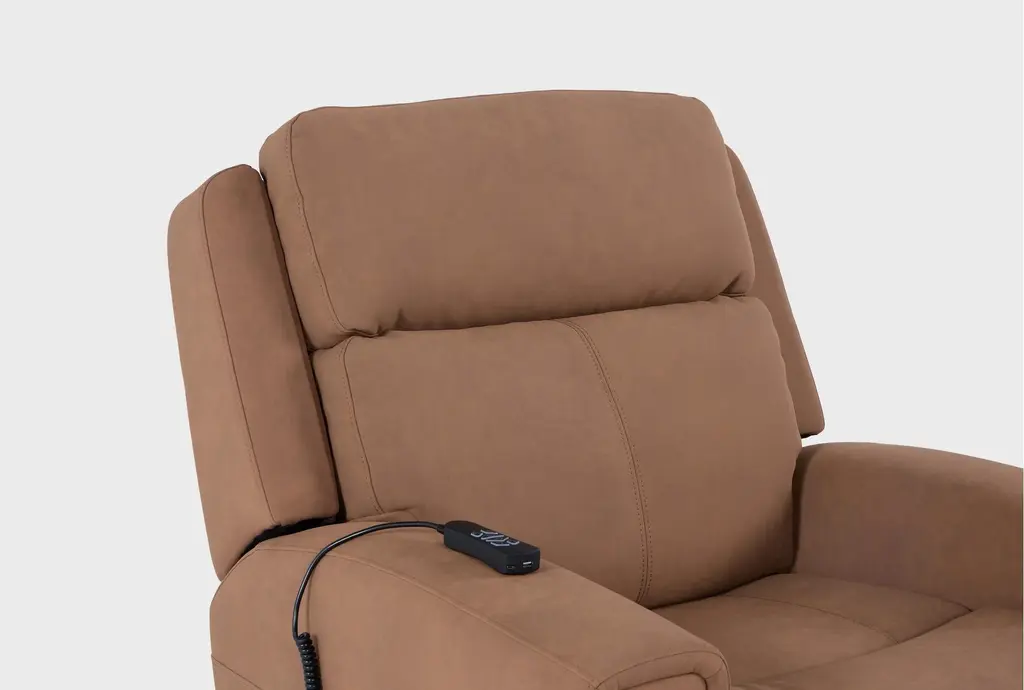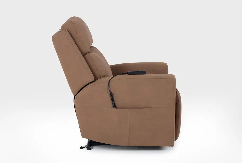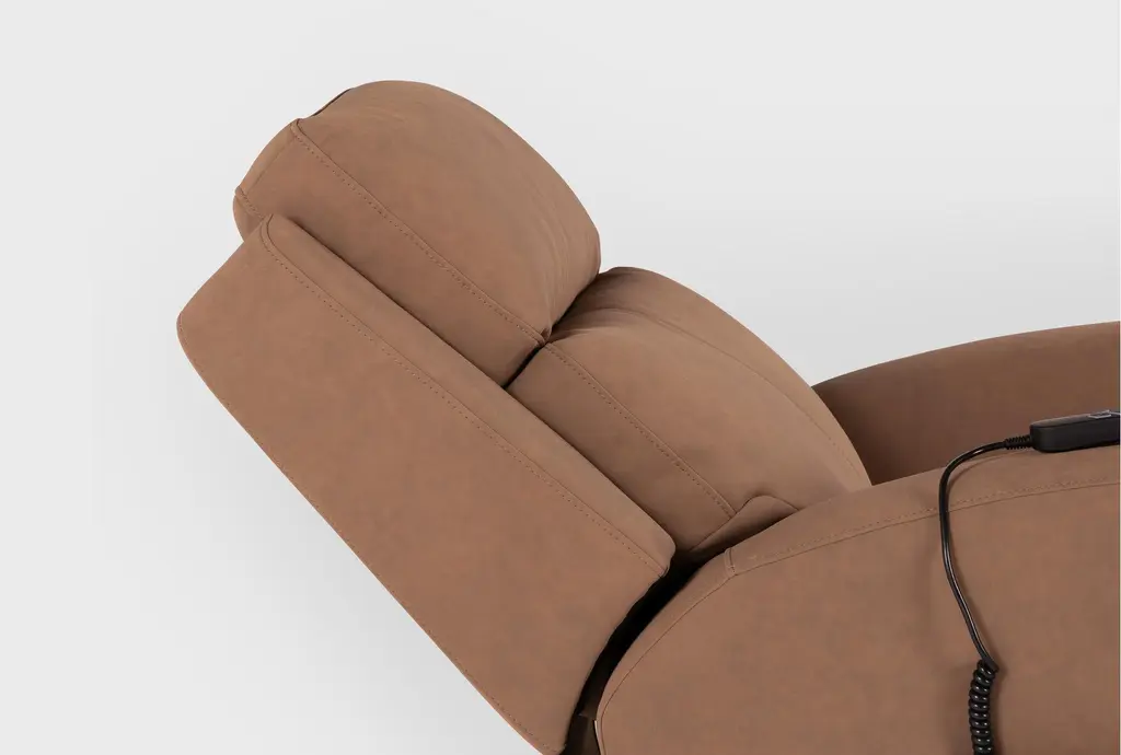 Quinn Saddle Brown Fabric 39" Power Lift Recliner With Power Headrest & Usb