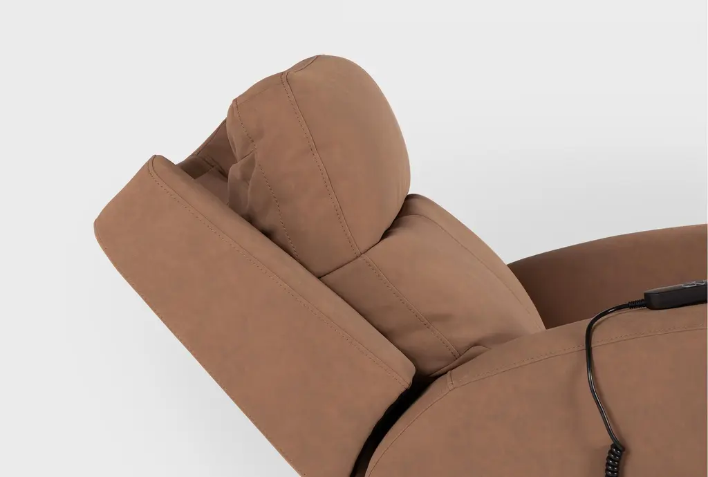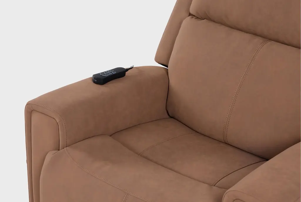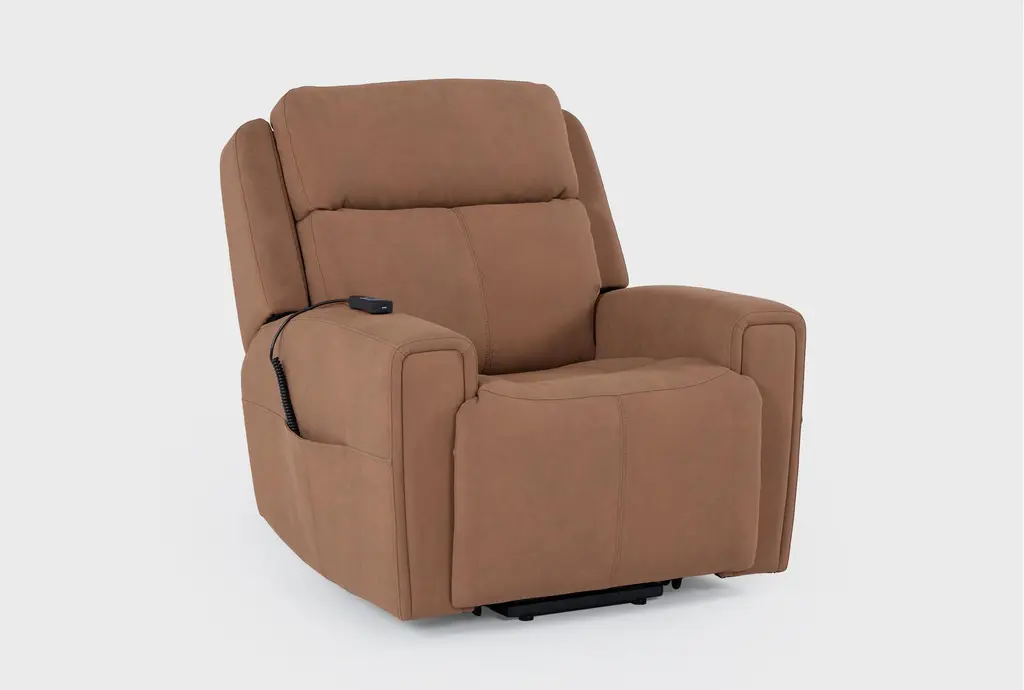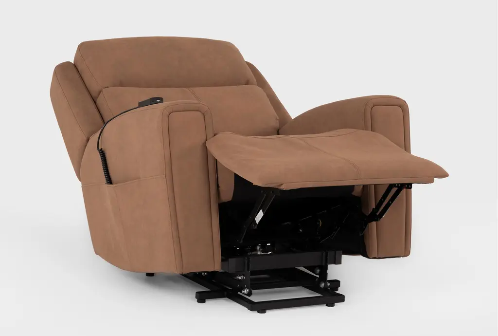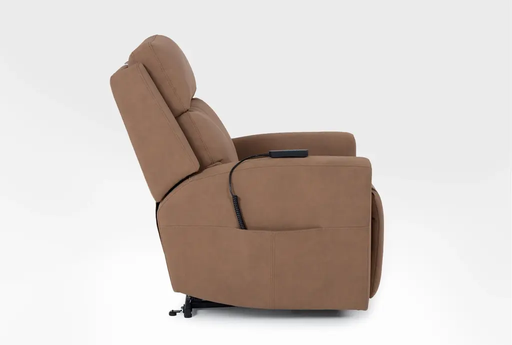 Quinn Saddle Brown Fabric 39" Power Lift Recliner With Power Headrest & Usb Set Of 2