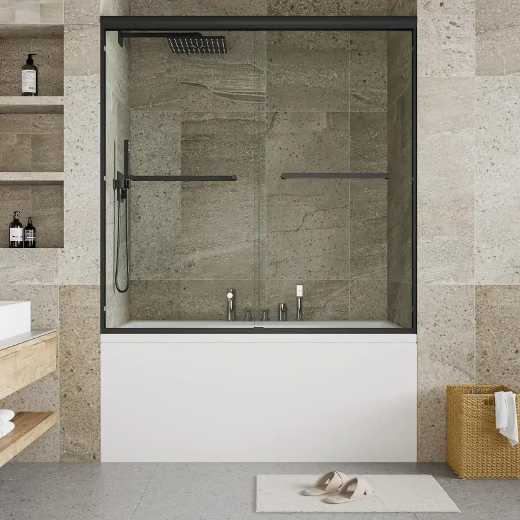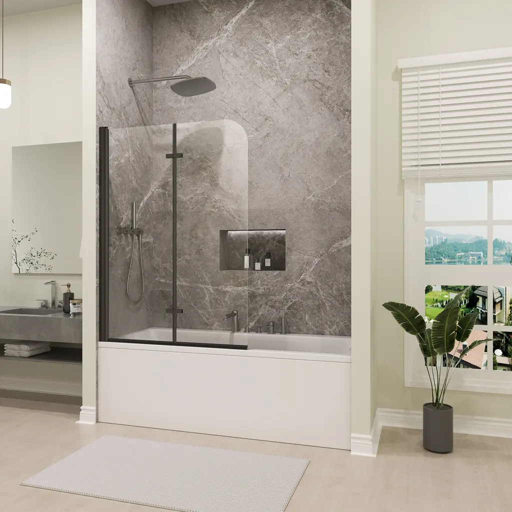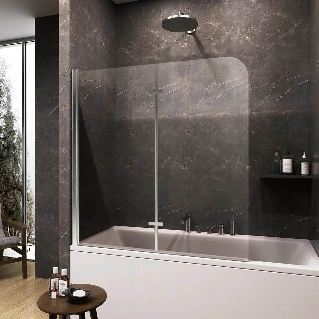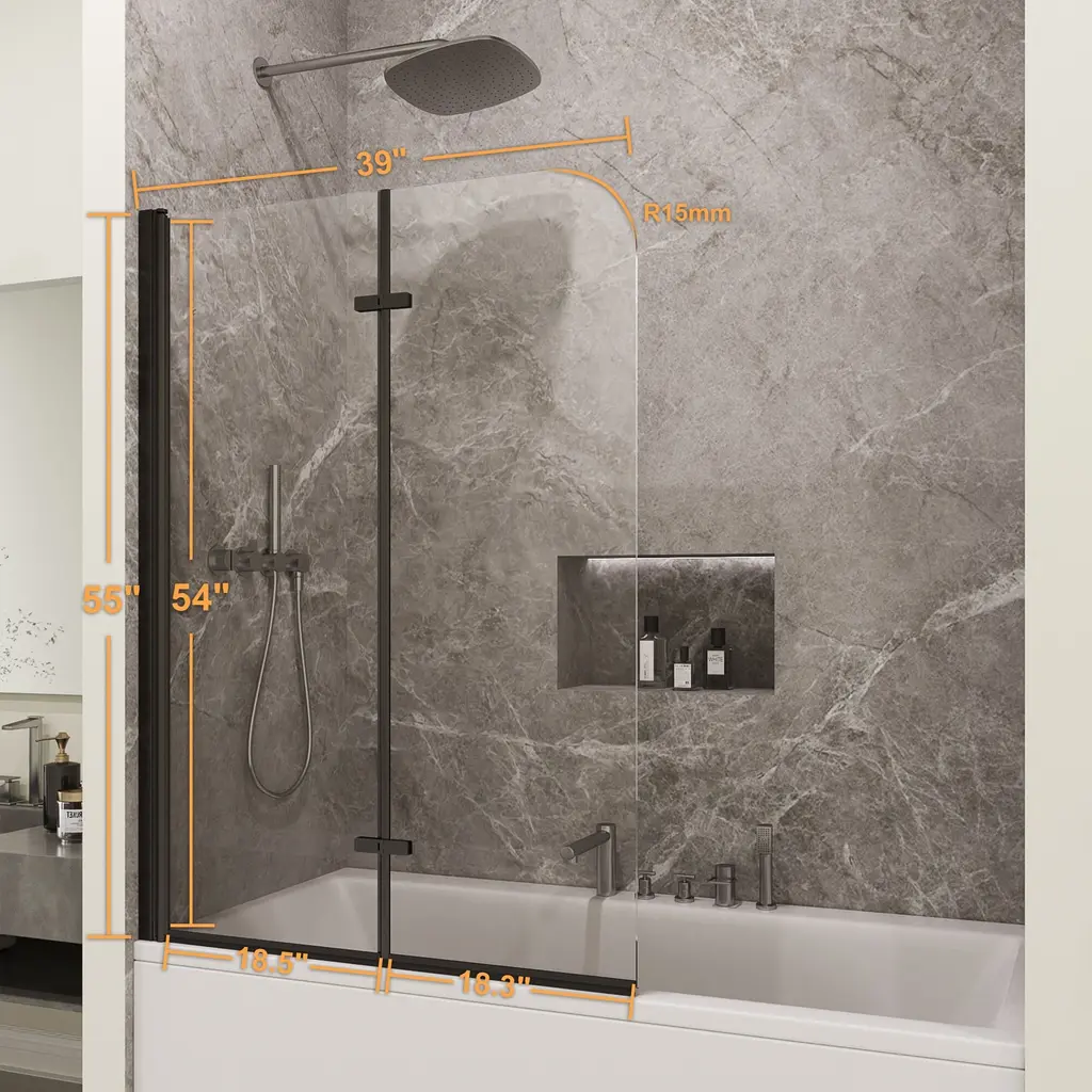 Transform your bathing experience with our Frameless Bi-Fold Bathtub Screen, where functionality meets chic design. With multiple sizing guarantees a flawless fit, adding a touch of modern elegance to your home. This sleek and contemporary shower screen is engineered to pivot a full 180 degrees, making it incredibly versatile for any bathroom layout. Crafted with premium materials, the minimalist design seamlessly integrates into your bathroom, providing a clean and sophisticated look. Our Foldable Elegance Shower Screen offers a refined approach to functionality and style, ensuring an enhanced bathing experience that fits your lifestyle.Features:· Safety and Durability · Premium Material· Easy cleaning · Space Saving Design· Water Proof· Reversible installationDetails:Safety and Durability:Crafted with high-hardness materials, this screen provides safe and explosion-proof protection, guaranteeing long-term reliability.Premium Glass Screen Panels: With ANSI-certified tempered glass, it is designed to seamlessly integrate with your bathtub, these panels provide the perfect balance of style and practicality. Easy Cleaning:The minimalist design ensures easy cleaning, maintaining a pristine look with minimal effort.The dual-panel system ensures that your bathroom stays dry and tidy on the outside, while the inside remains an oasis of calm for your bathing experience. Enjoying a hassle-free cleaning experience with our easy-to-install glass screen panels.Space-Saving Design: Its compact structure maximizes your bathroom’s available space, making it ideal for both small and large bathrooms.Waterproof Design: It is a durable and waterproof design that with technology protective nano Coating and waterproof strip to prevent water from leaking through the gap.Reversible installation: According to your space need,reversible for right or left wall installation to fit your specific layout.