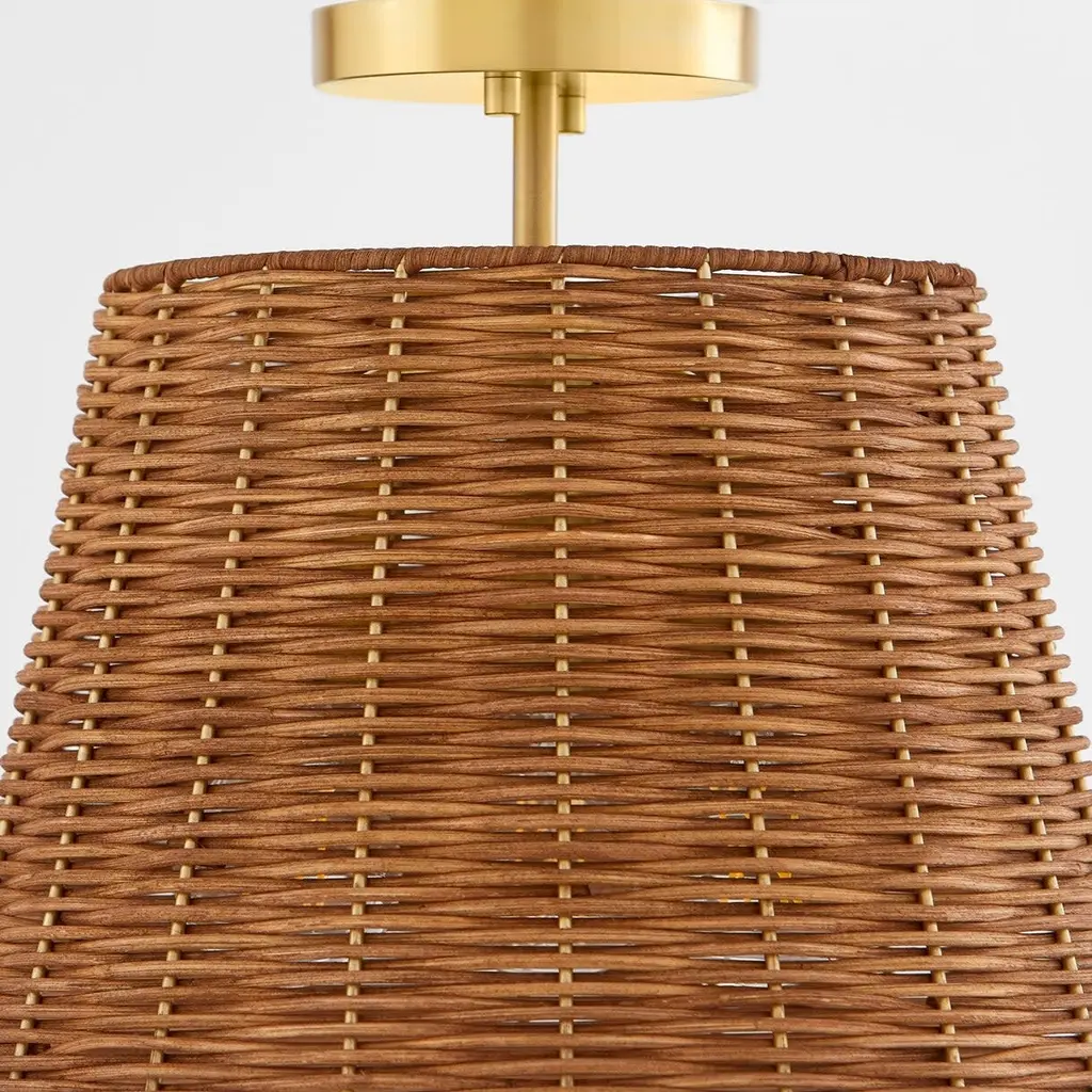 Quorum International 2893-13 Wicker 3 Light 13" Wide Semi-Flush - Aged Brass