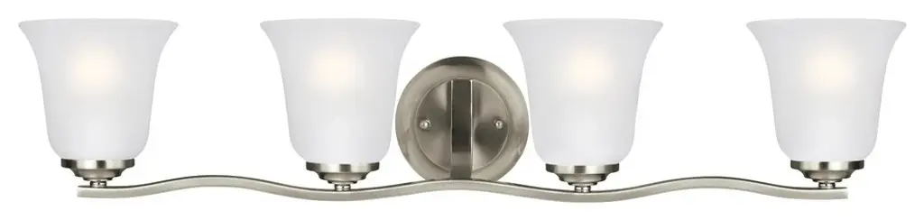 Finish Color: Satin Nickel, Width: 25", Height: 8", Depth: 8.5", Lamping Type: Incandescent, Number Of Bulbs: 4, Wattage: 100 Watts, Moisture Rating: Damp Rated, Desc: Shade Included: Yes. ,