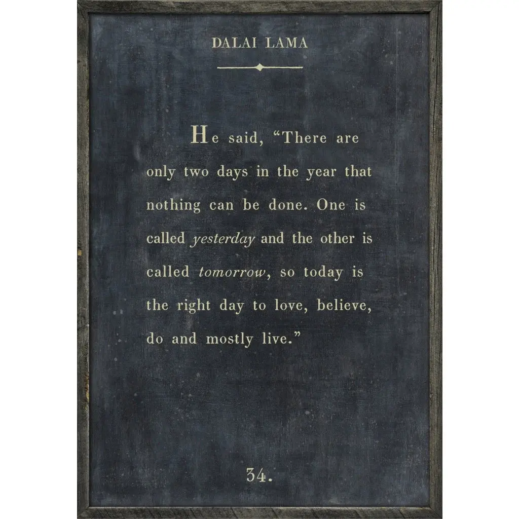 When there is a quote or passage that resonates, it's sometimes nice to have it as a daily reminder. It may have a positive effect on the quality of one's day. A simple chalkboard-like finish and weathered grey wood frame allows the focus to be on the message at hand. Choose your color background and frame style.